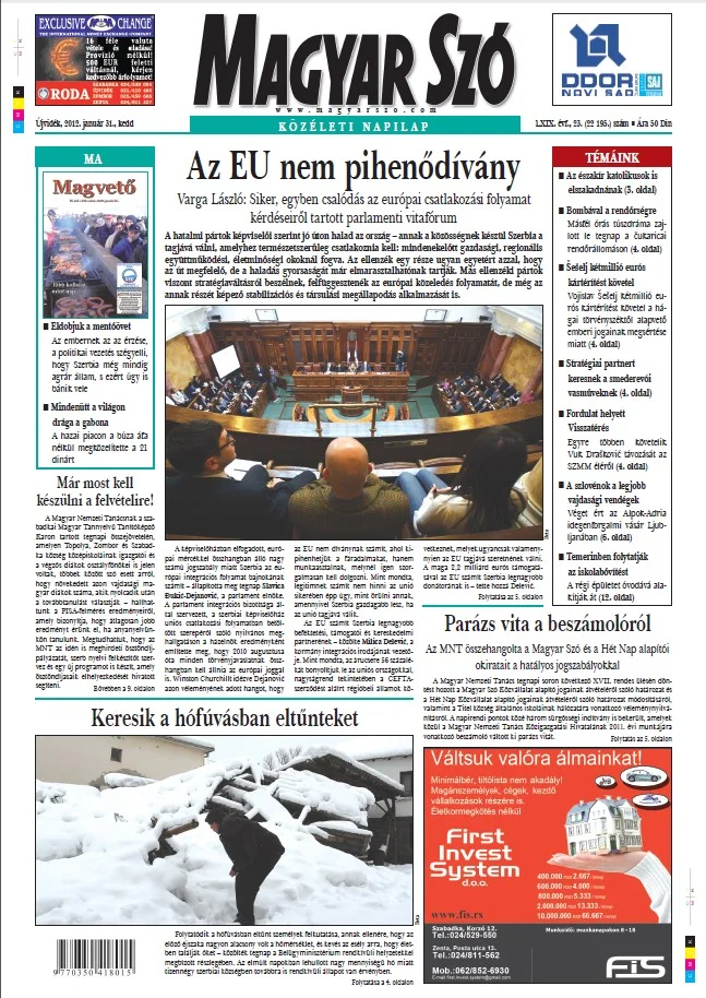 Magyar Szó, 69. évf. 2012. január 31. 23. sz. 1–20. oldal