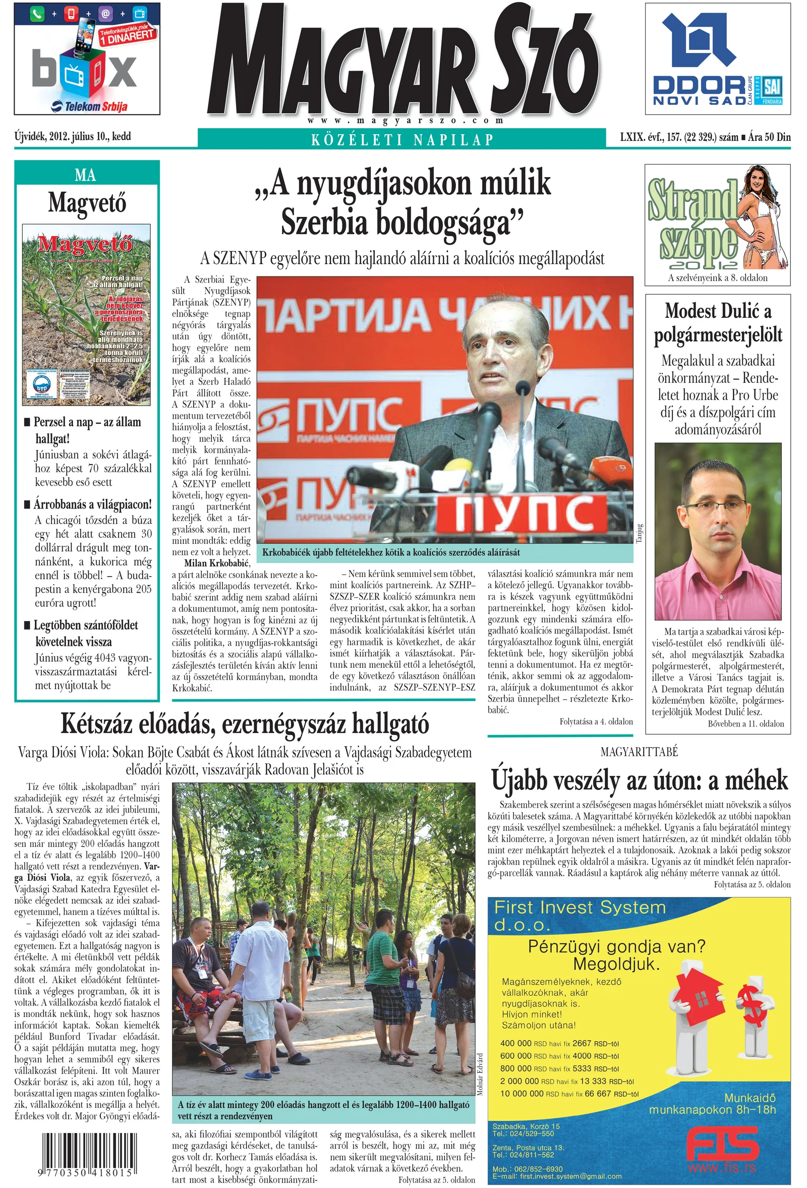 Magyar Szó, 69. évf. 2012. július 10. 157. sz. 1–20. oldal