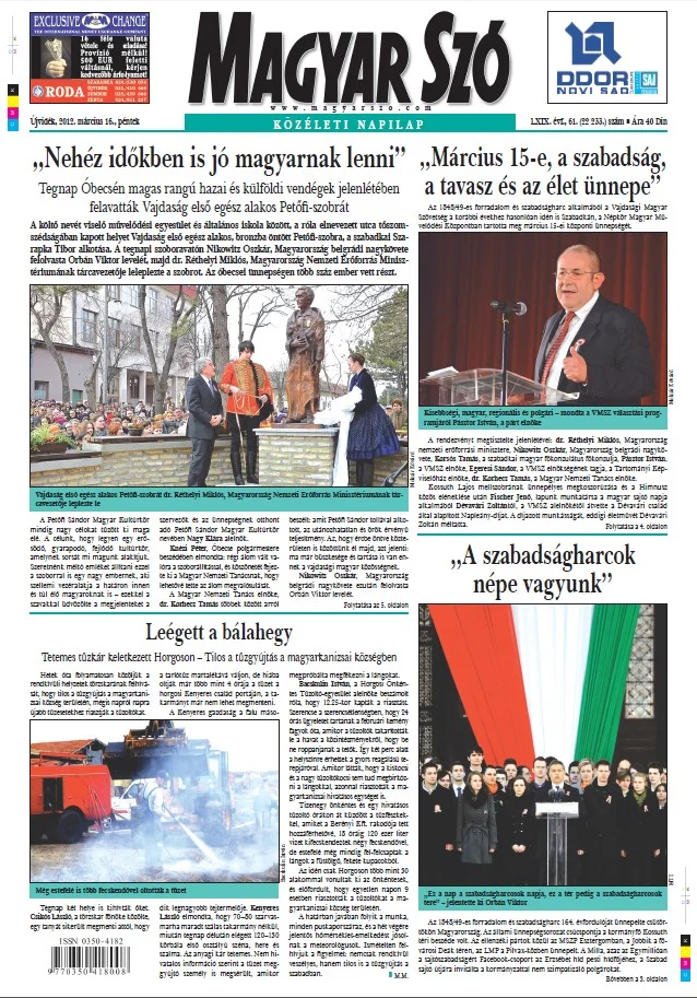 Magyar Szó, 69. évf. 2012. március 16. 61. sz. 1–20. oldal