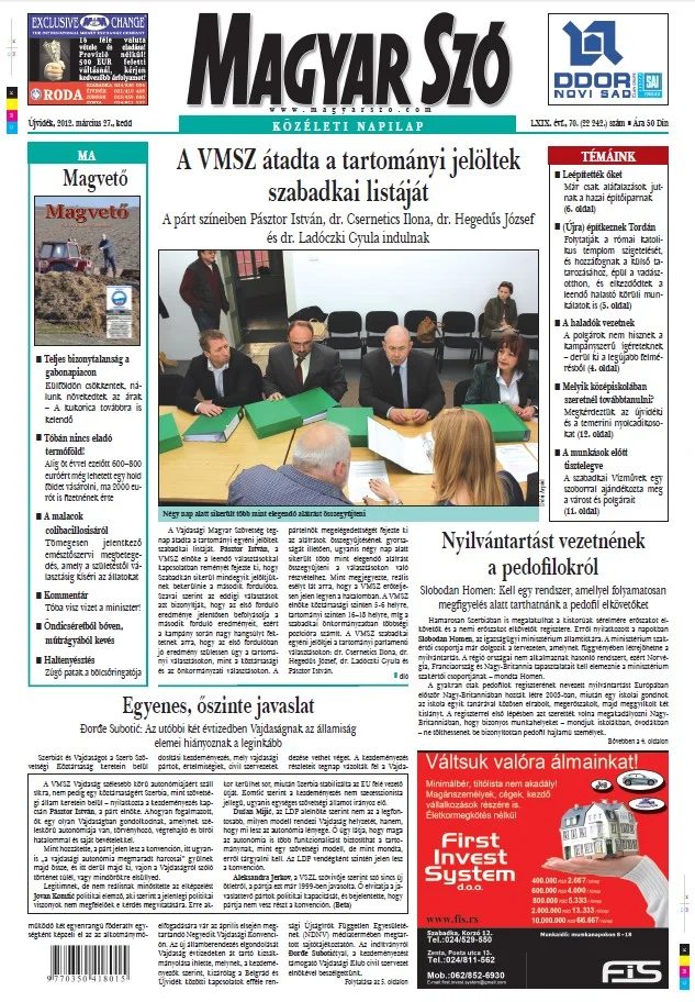 Magyar Szó, 69. évf. 2012. március 27. 70. sz. 1–20. oldal