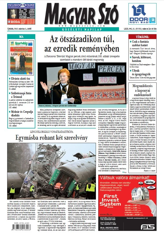 Magyar Szó, 69. évf. 2012. március 5. 51. sz. 1–16. oldal