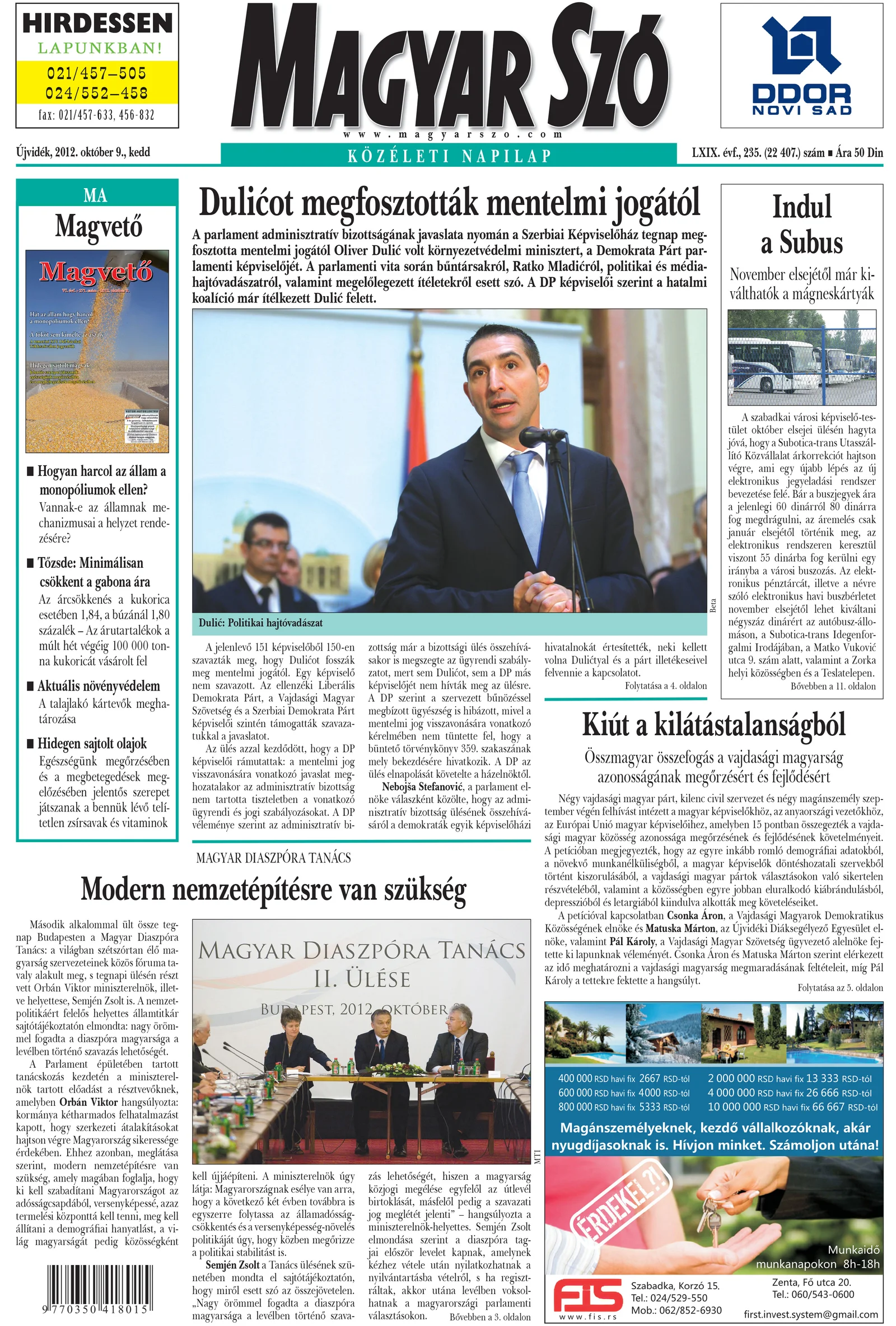 Magyar Szó, 69. évf. 2012. október 9. 235. sz. 1–20. oldal