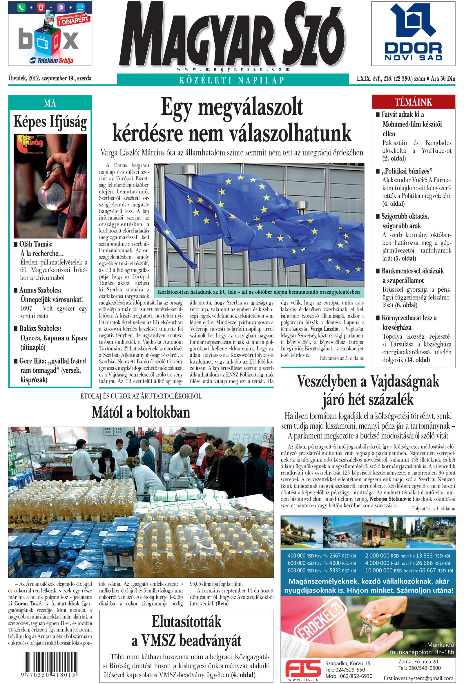 Magyar Szó, 69. évf. 2012. szeptember 19. 218. sz. 1–20. oldal