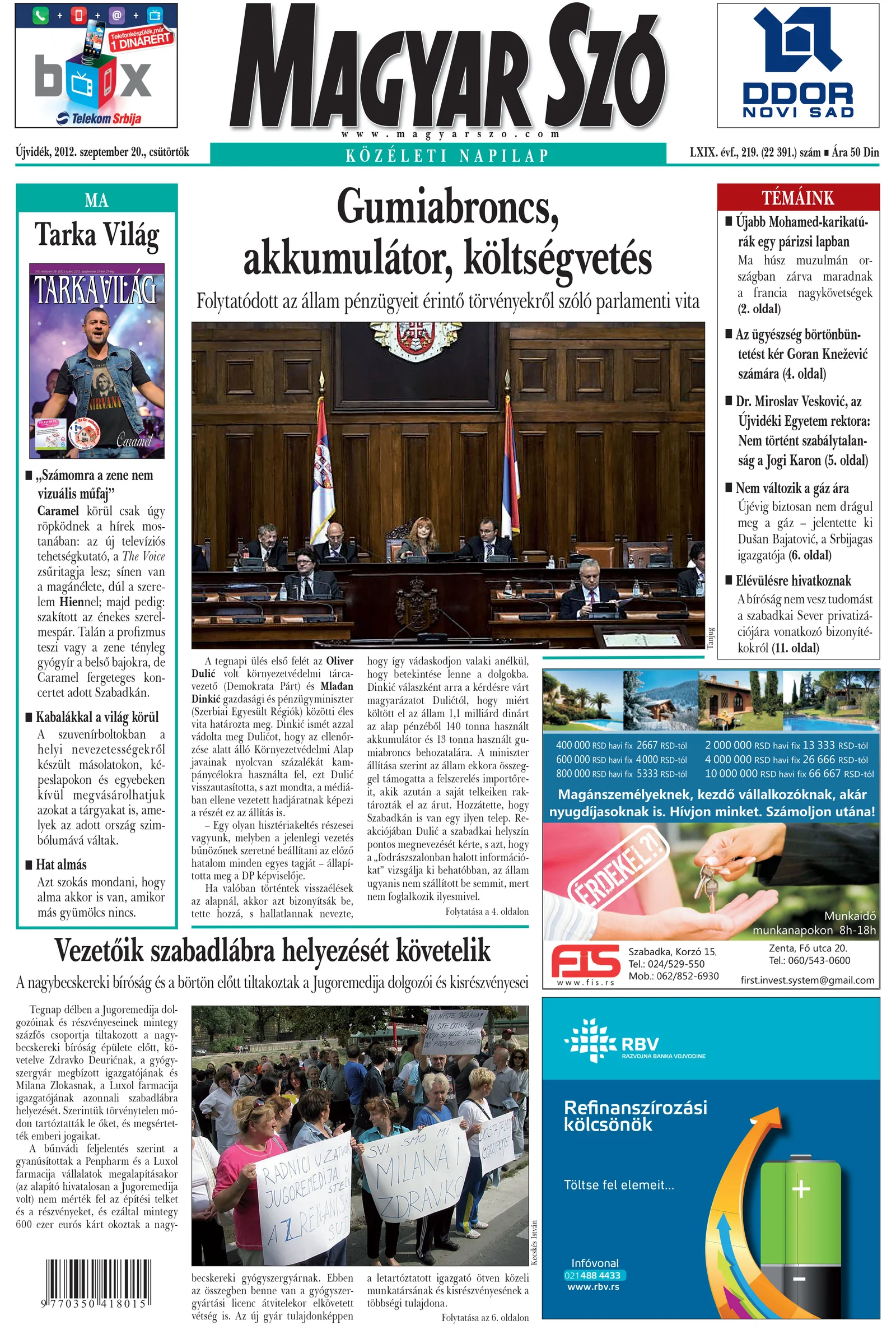 Magyar Szó, 69. évf. 2012. szeptember 20. 219. sz. 1–20. oldal