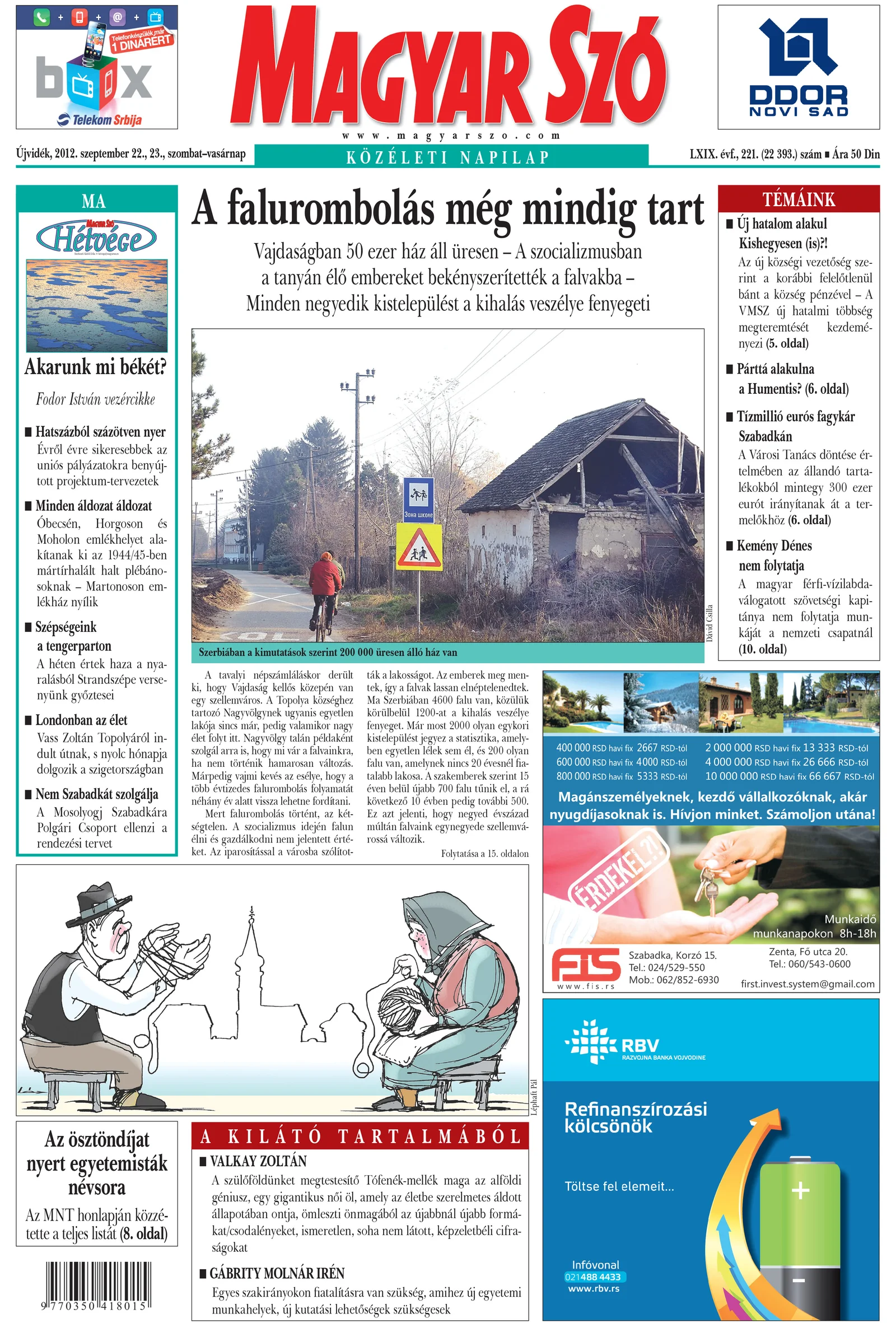 Magyar Szó, 69. évf. 2012. szeptember 22. – 23. 221. sz. 1–44. oldal