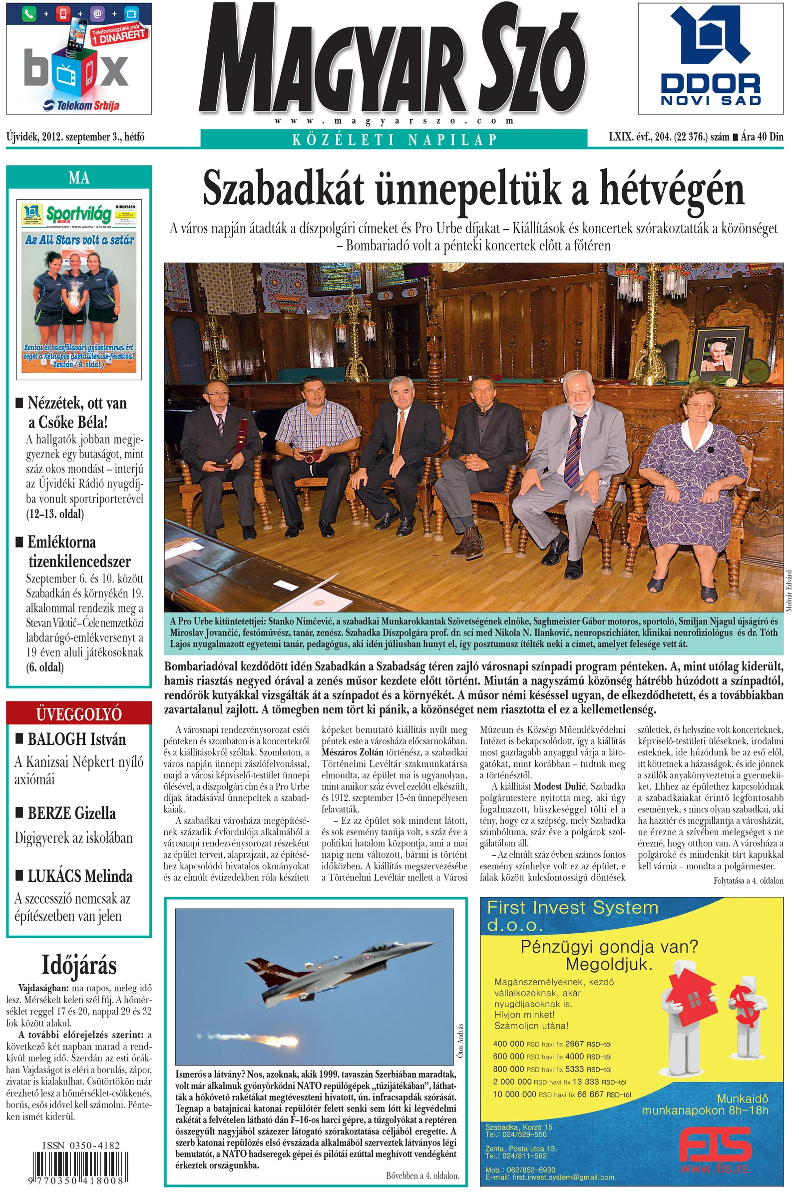 Magyar Szó, 69. évf. 2012. szeptember 3. 204. sz. 1–16. oldal