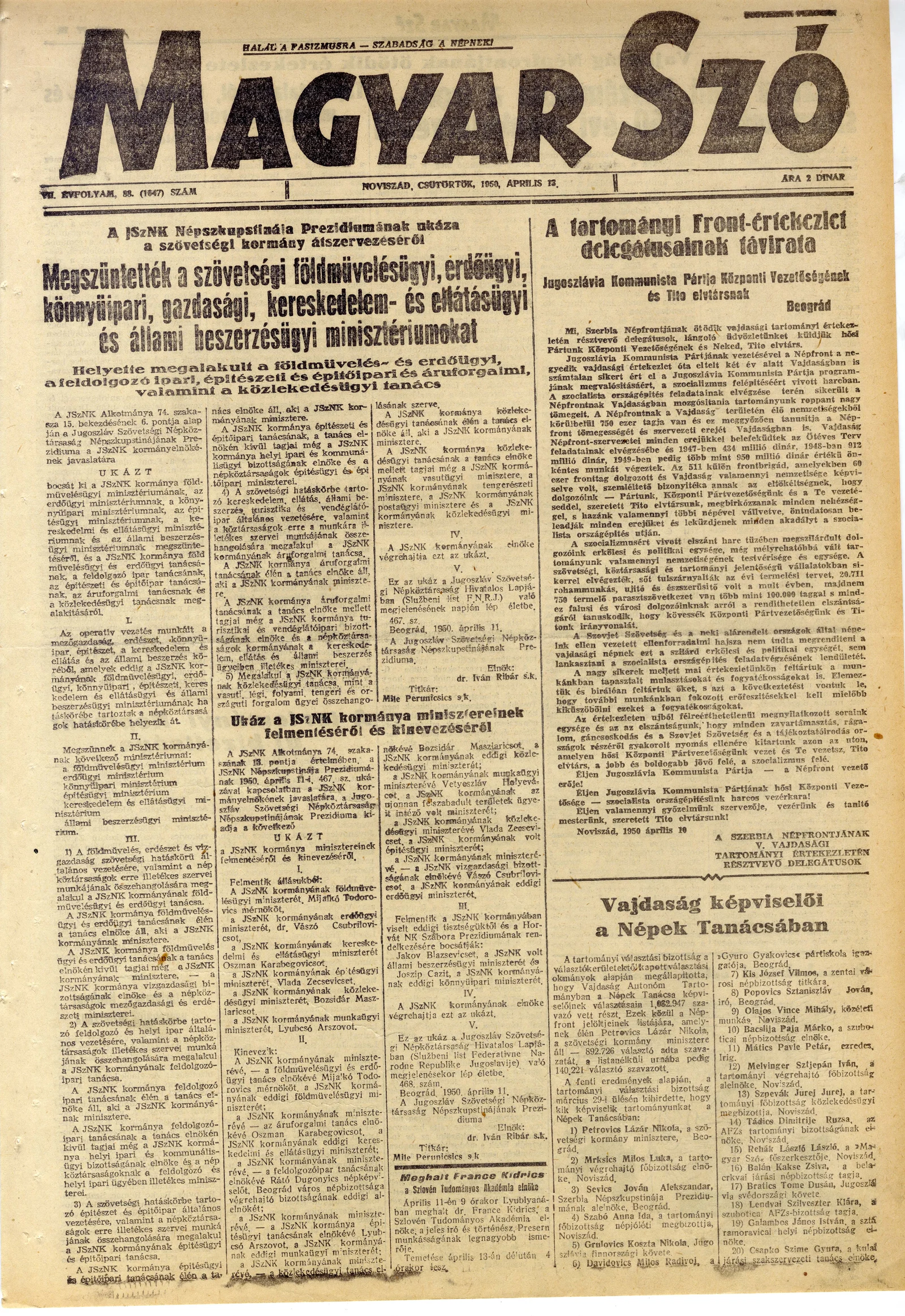 Magyar Szó, 7. évf. 1950. április 13. 88. sz. 1–4. oldal
