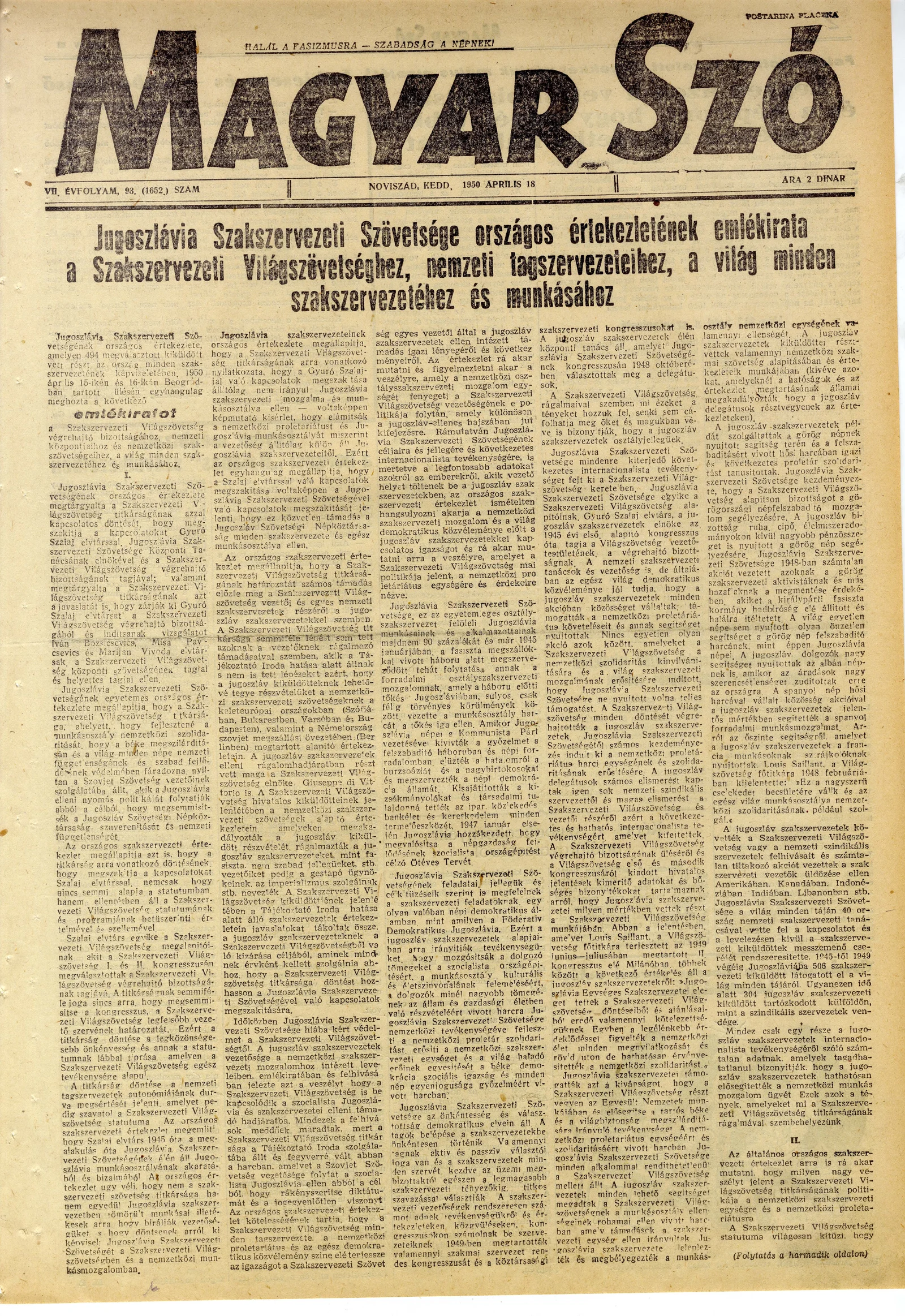 Magyar Szó, 7. évf. 1950. április 18. 93. sz. 1–4. oldal