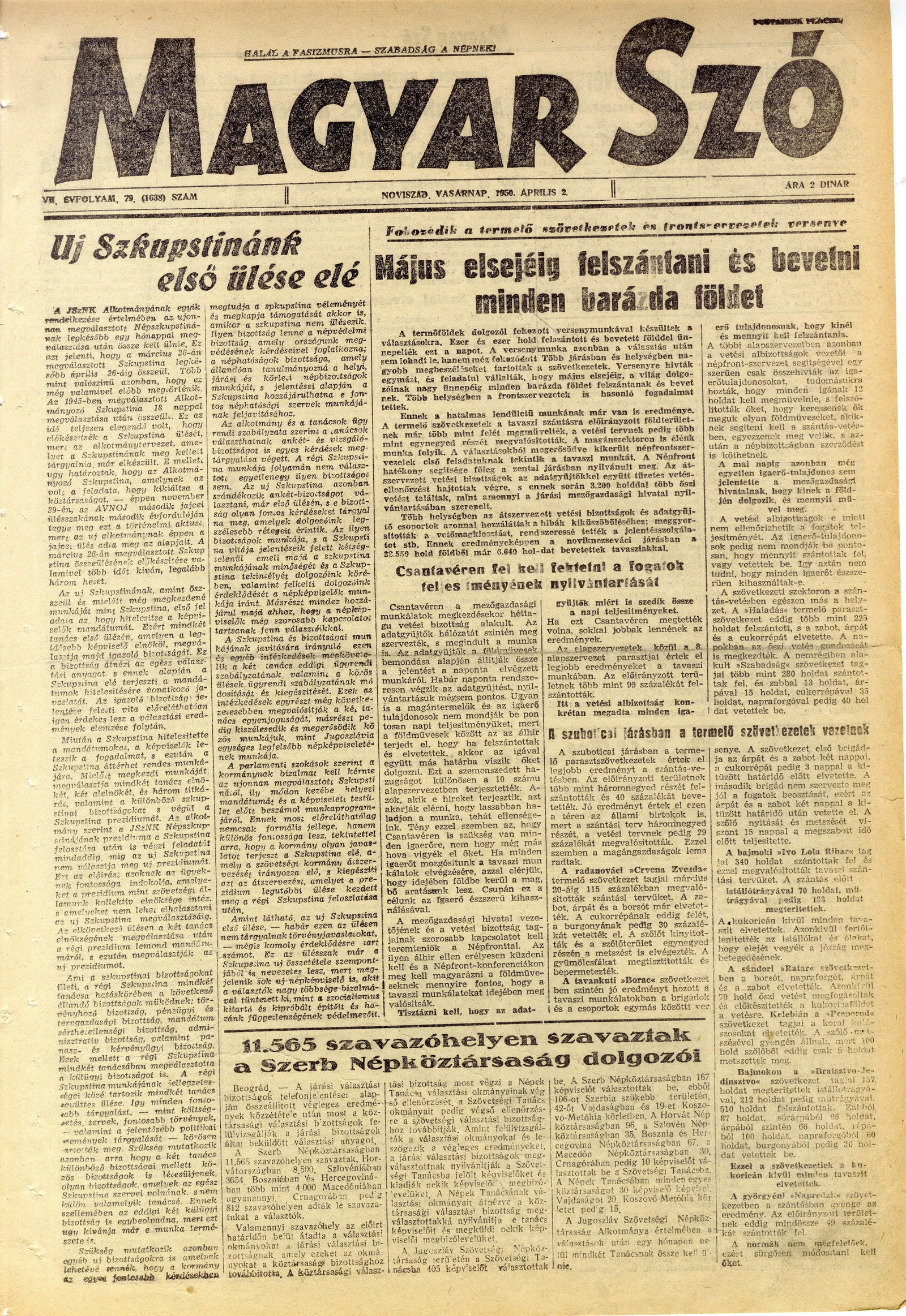 Magyar Szó, 7. évf. 1950. április 2. 79. sz. 1–4. oldal