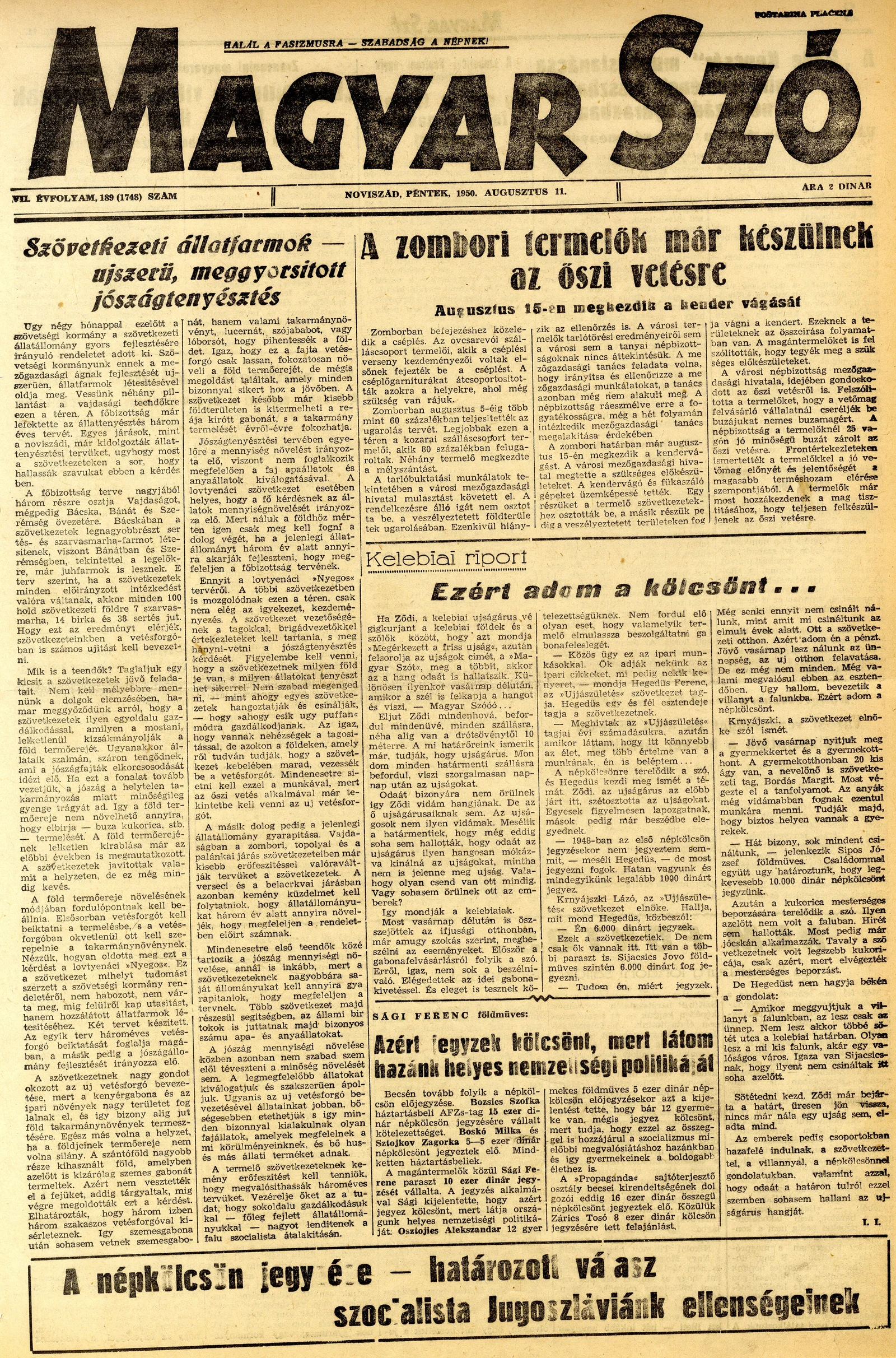 Magyar Szó, 7. évf. 1950. augusztus 11. 189. sz. 1–4. oldal