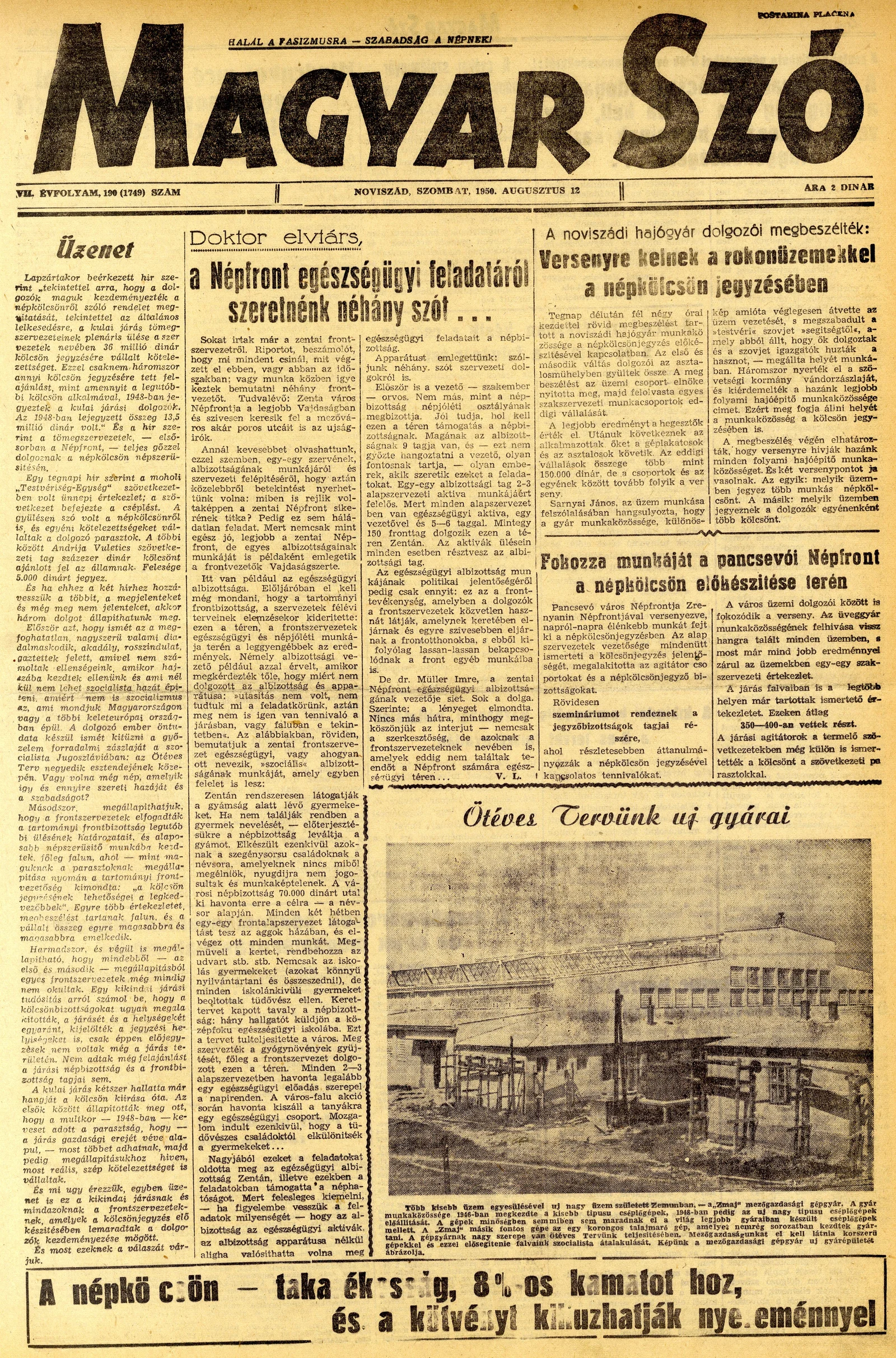 Magyar Szó, 7. évf. 1950. augusztus 12. 190. sz. 1–4. oldal