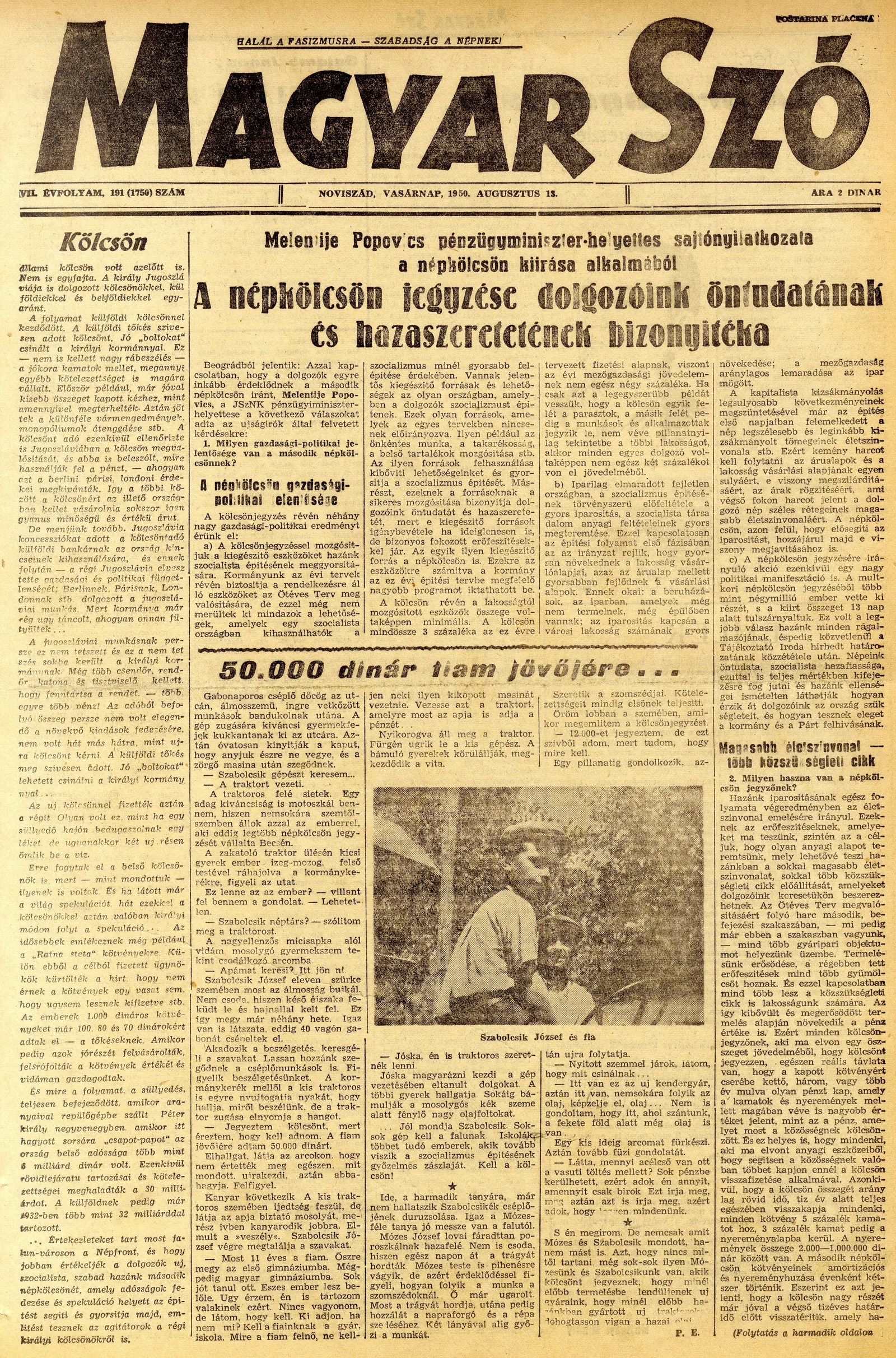 Magyar Szó, 7. évf. 1950. augusztus 13. 191. sz. 1–4. oldal
