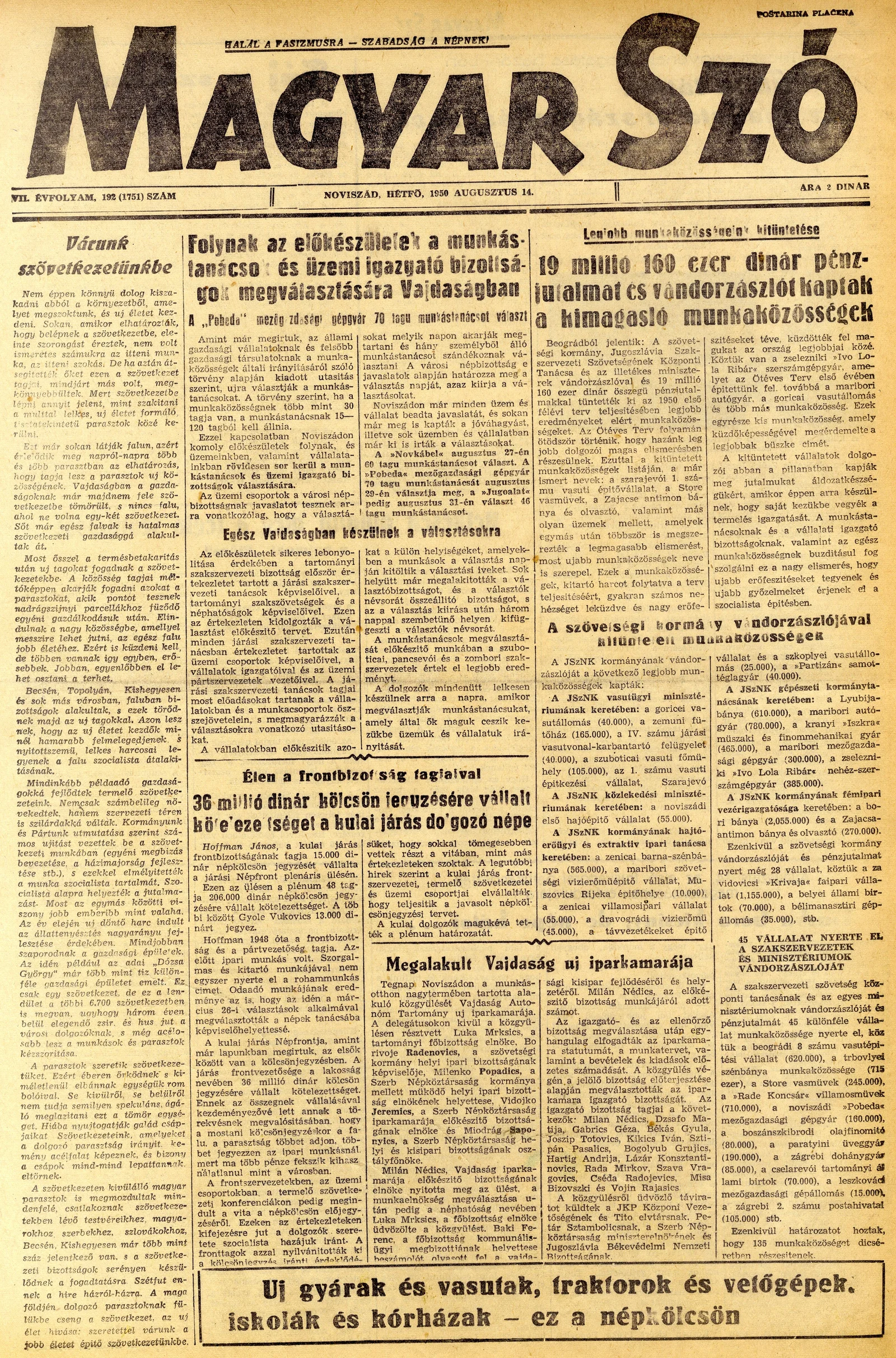 Magyar Szó, 7. évf. 1950. augusztus 14. 192. sz. 1–4. oldal