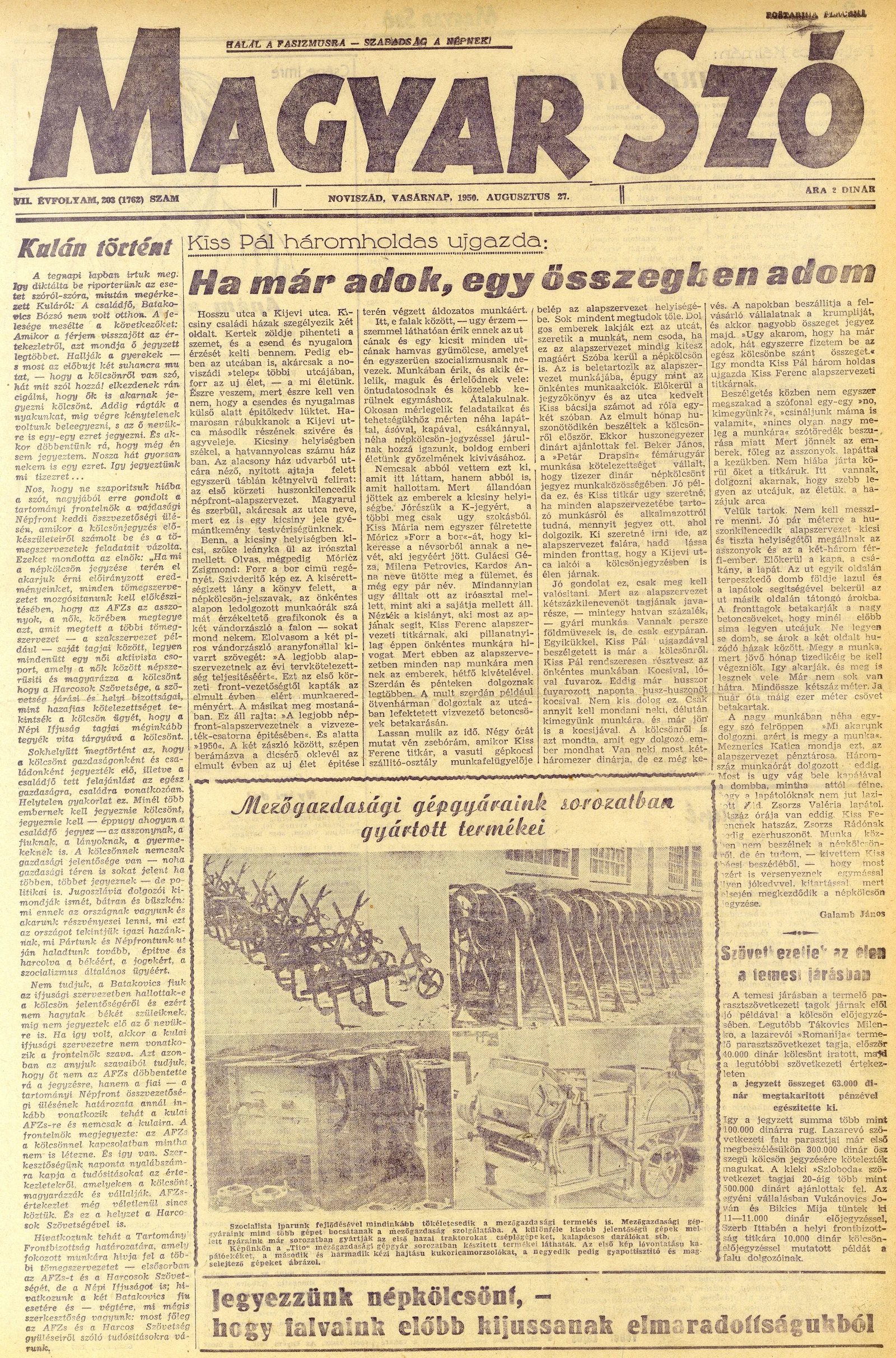 Magyar Szó, 7. évf. 1950. augusztus 27. 203. sz. 1–4. oldal