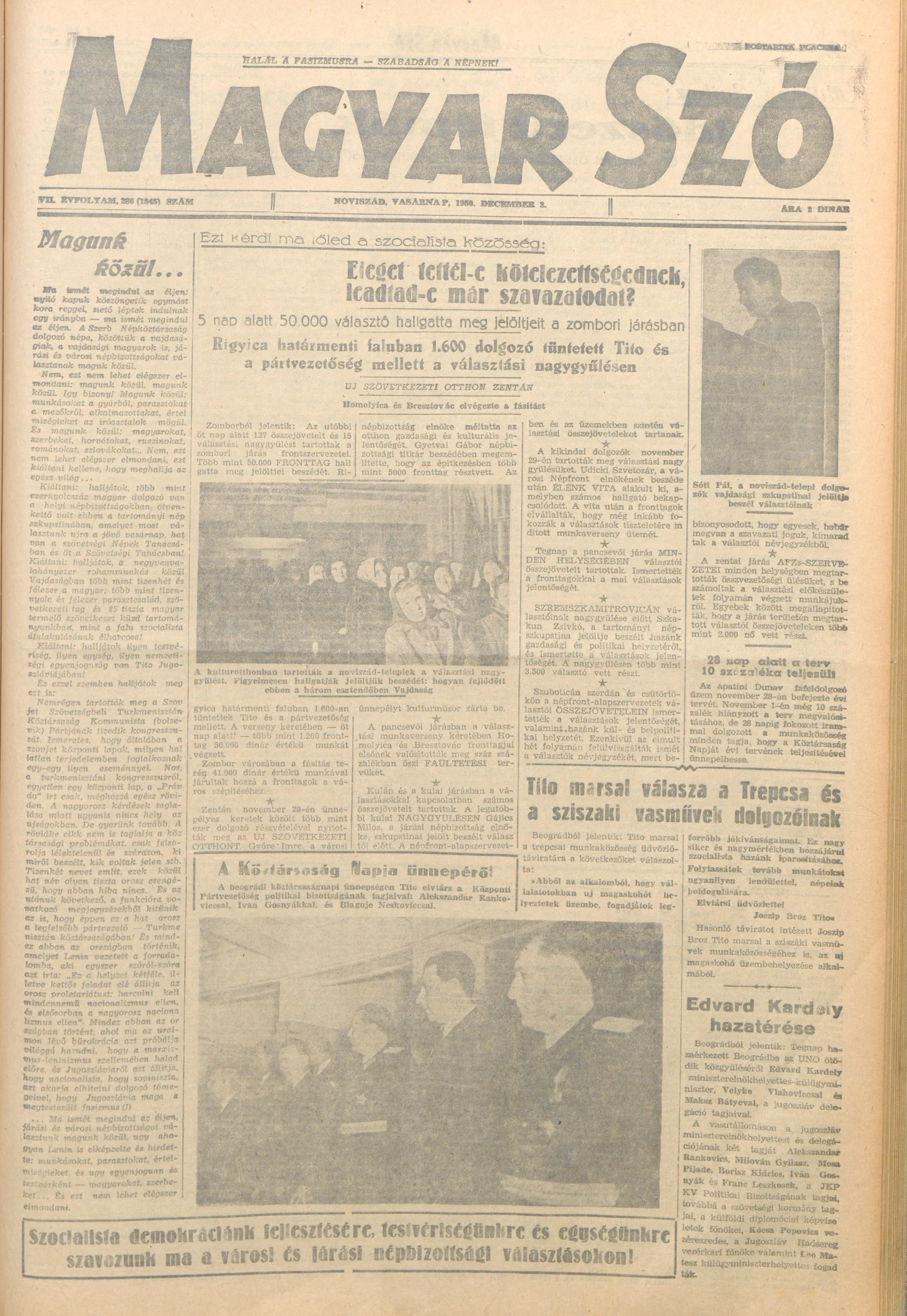 Magyar Szó, 7. évf. 1950. december 3. 286. sz. 1–4. oldal