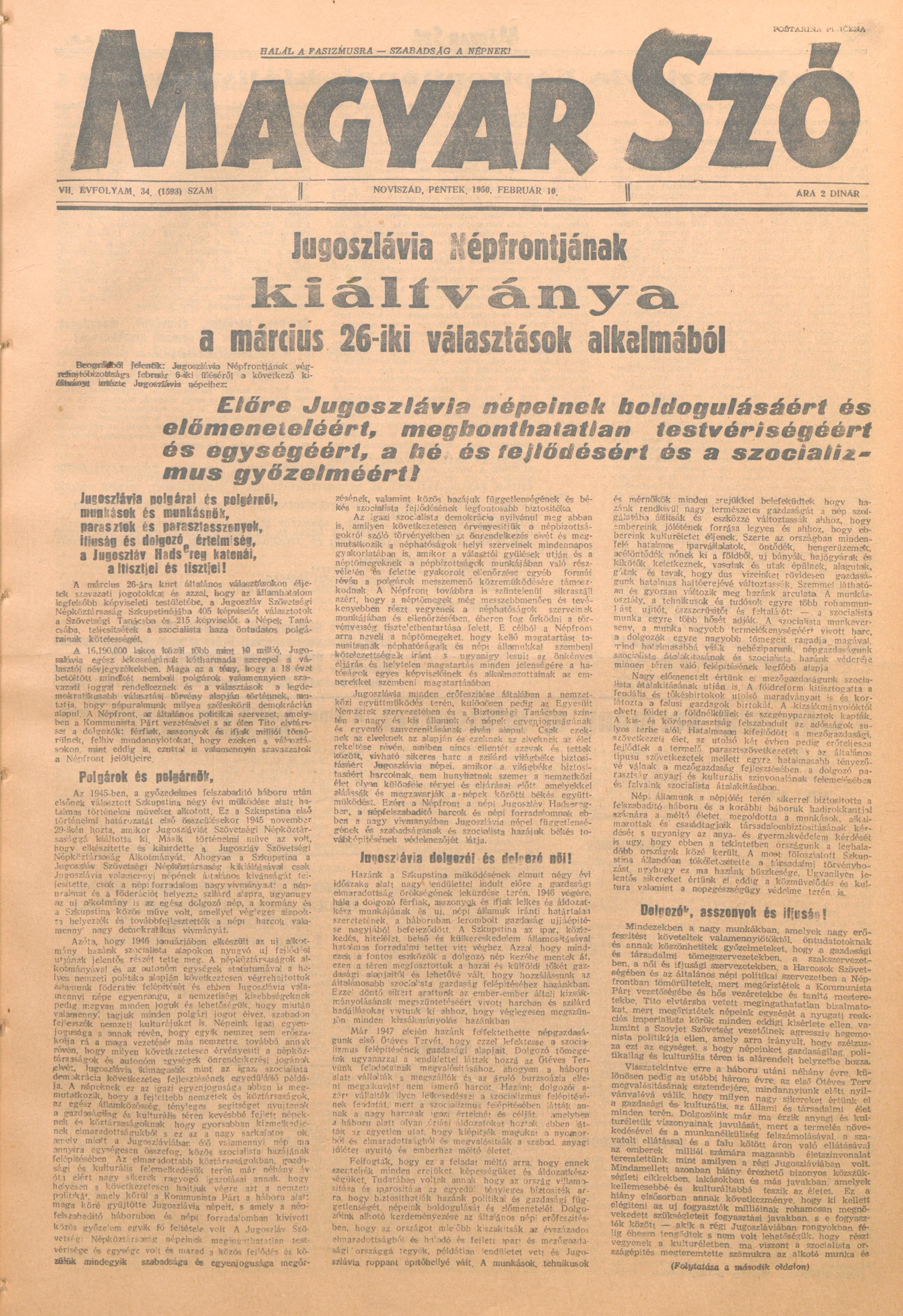 Magyar Szó, 7. évf. 1950. február 10. 34. sz. 1–4. oldal