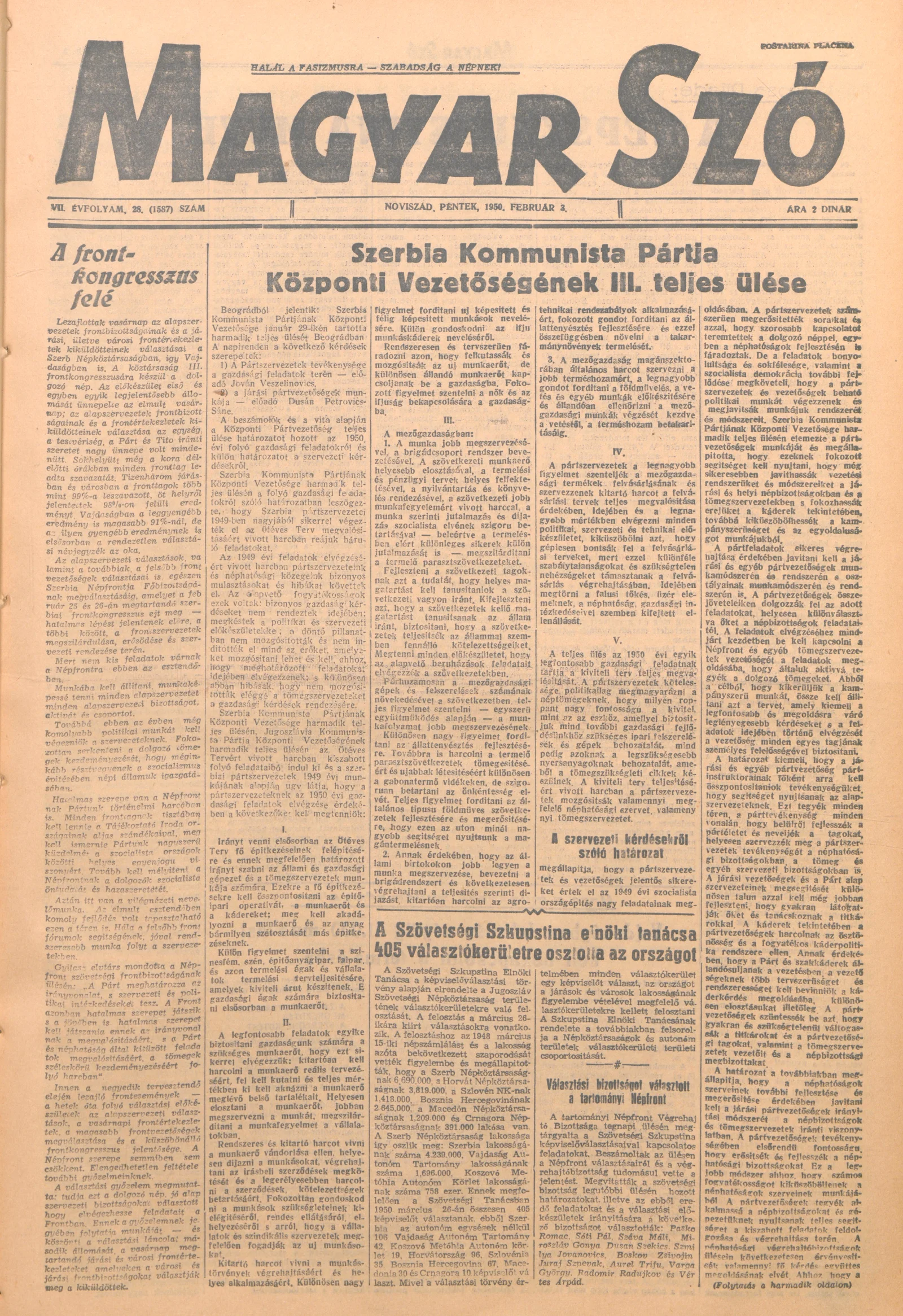 Magyar Szó, 7. évf. 1950. február 3. 28. sz. 1–4. oldal
