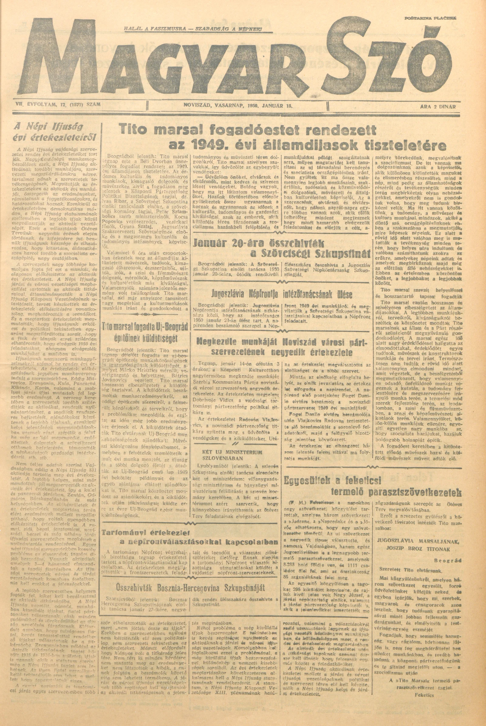 Magyar Szó, 7. évf. 1950. január 15. 12. sz. 1–4. oldal
