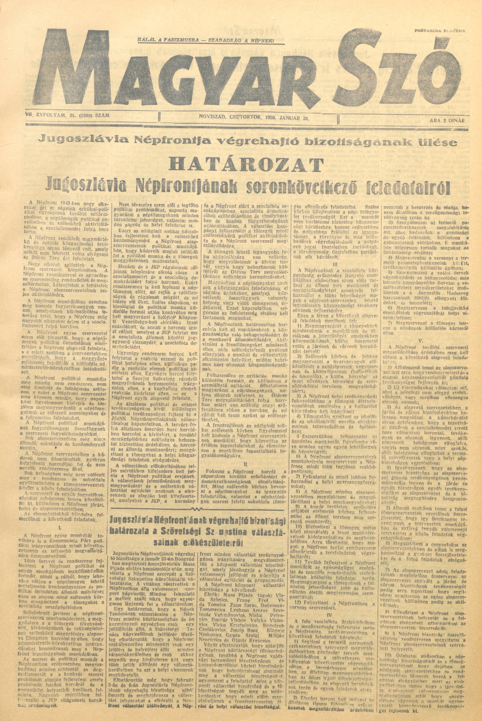 Magyar Szó, 7. évf. 1950. január 26. 21. sz. 1–4. oldal