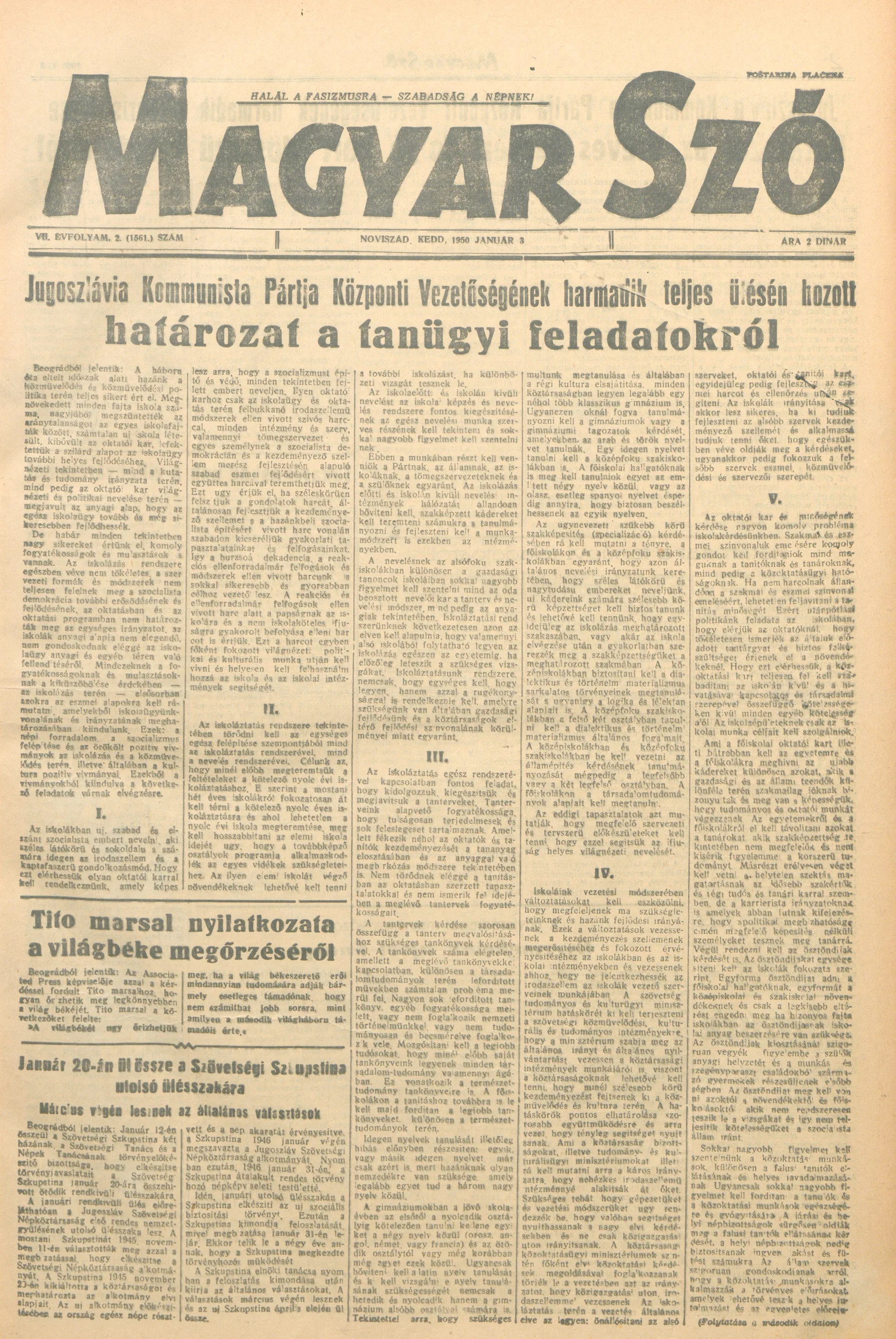 Magyar Szó, 7. évf. 1950. január 3. 2. sz. 1–4. oldal