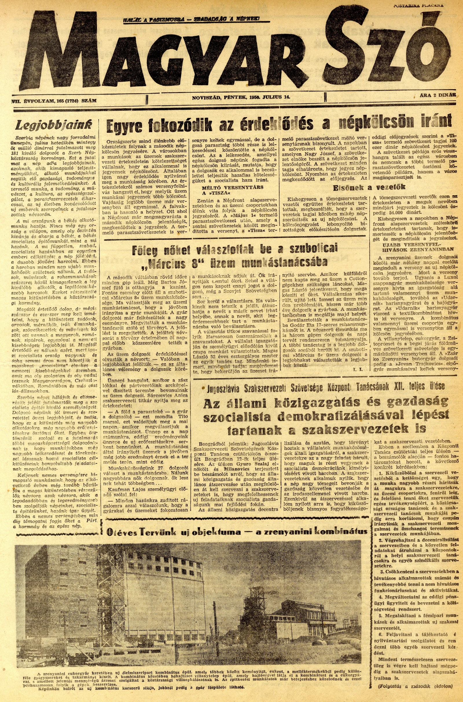 Magyar Szó, 7. évf. 1950. július 14. 165. sz. 1–4. oldal