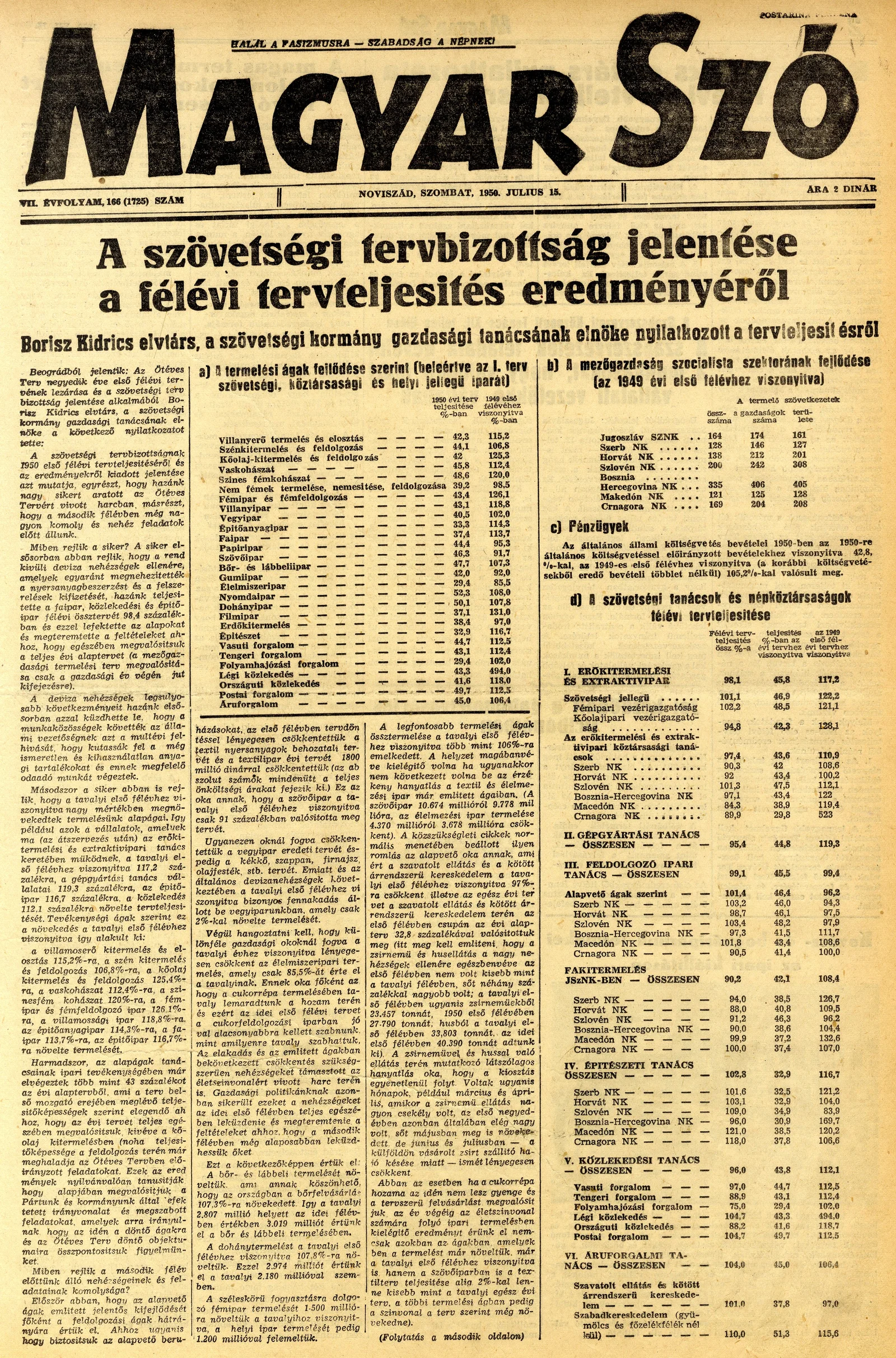 Magyar Szó, 7. évf. 1950. július 15. 166. sz. 1–4. oldal