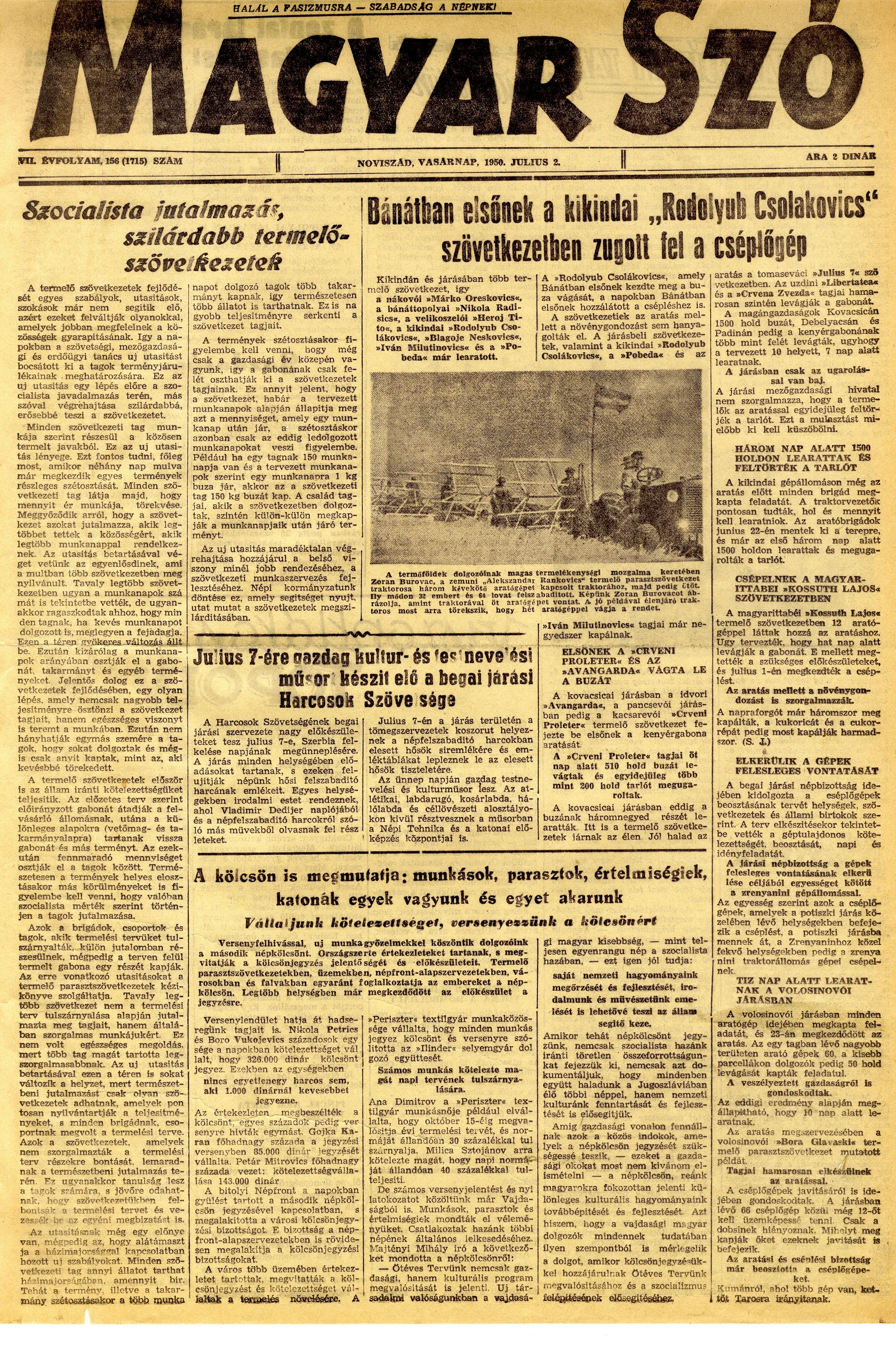 Magyar Szó, 7. évf. 1950. július 2. 156. sz. 1–4. oldal