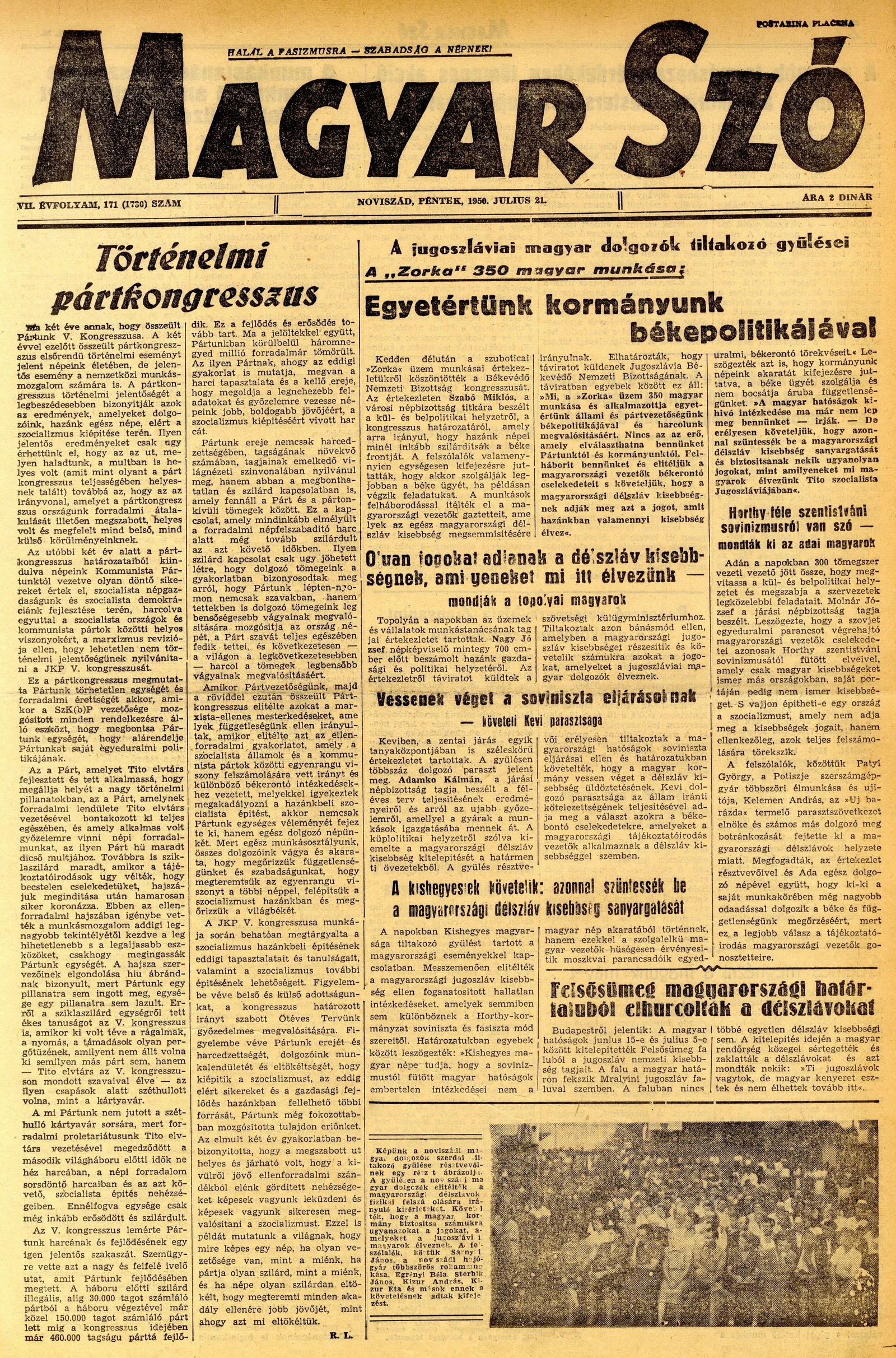 Magyar Szó, 7. évf. 1950. július 21. 171. sz. 1–4. oldal