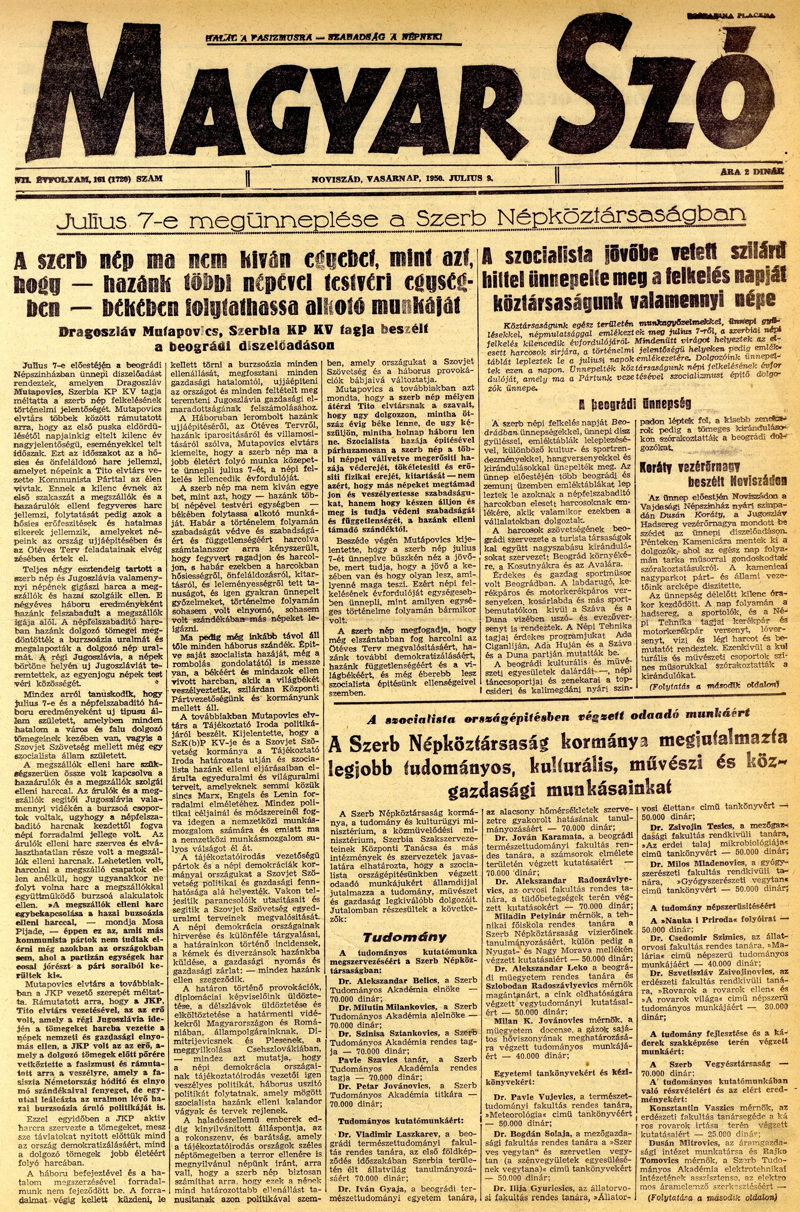Magyar Szó, 7. évf. 1950. július 9. 161. sz. 1–4. oldal