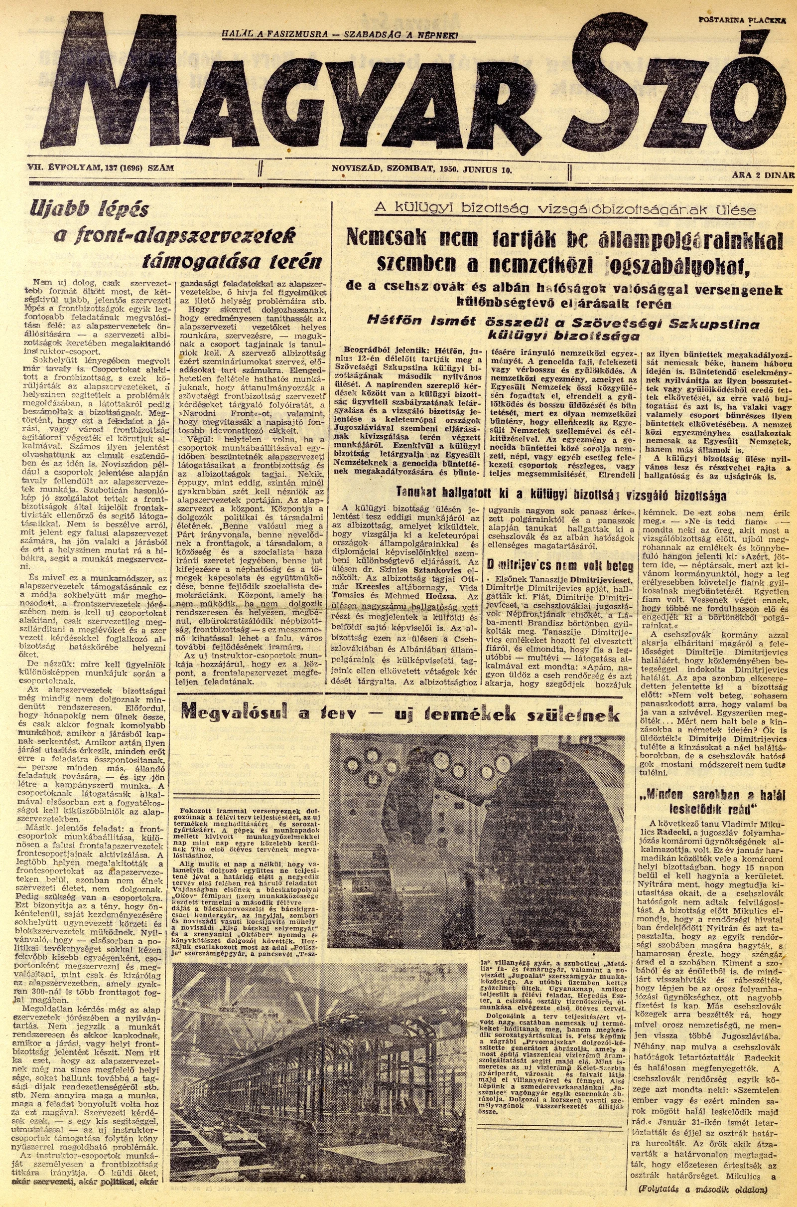 Magyar Szó, 7. évf. 1950. június 10. 137. sz. 1–4. oldal