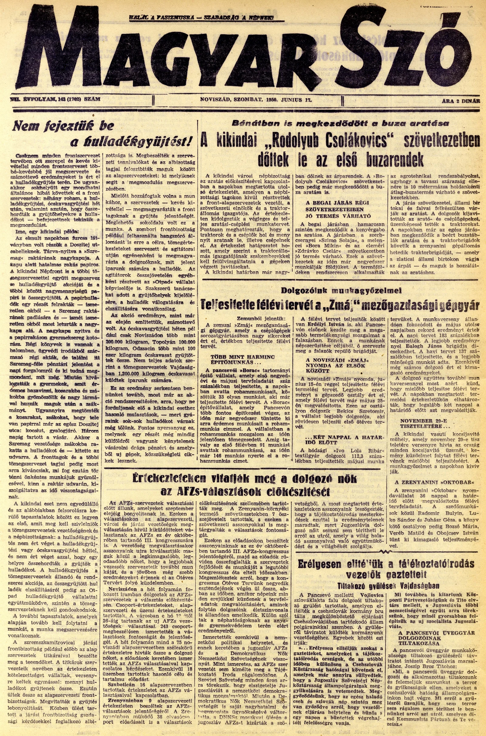 Magyar Szó, 7. évf. 1950. június 17. 143. sz. 1–4. oldal
