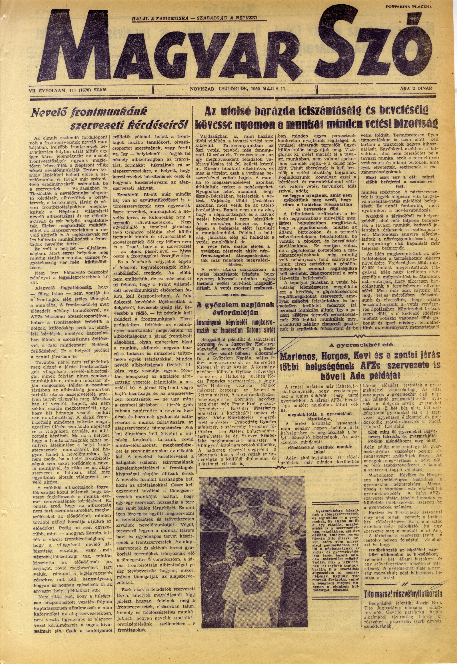 Magyar Szó, 7. évf. 1950. május 11. 111. sz. 1–4. oldal