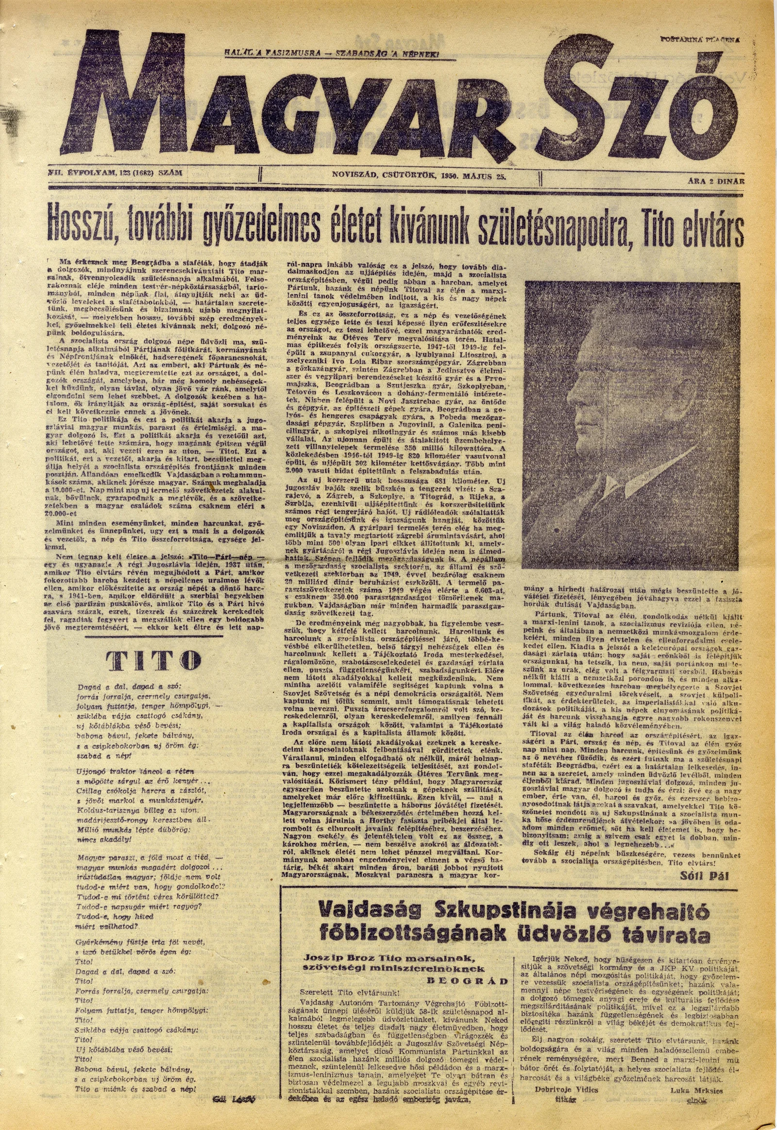 Magyar Szó, 7. évf. 1950. május 25. 123. sz. 1–4. oldal