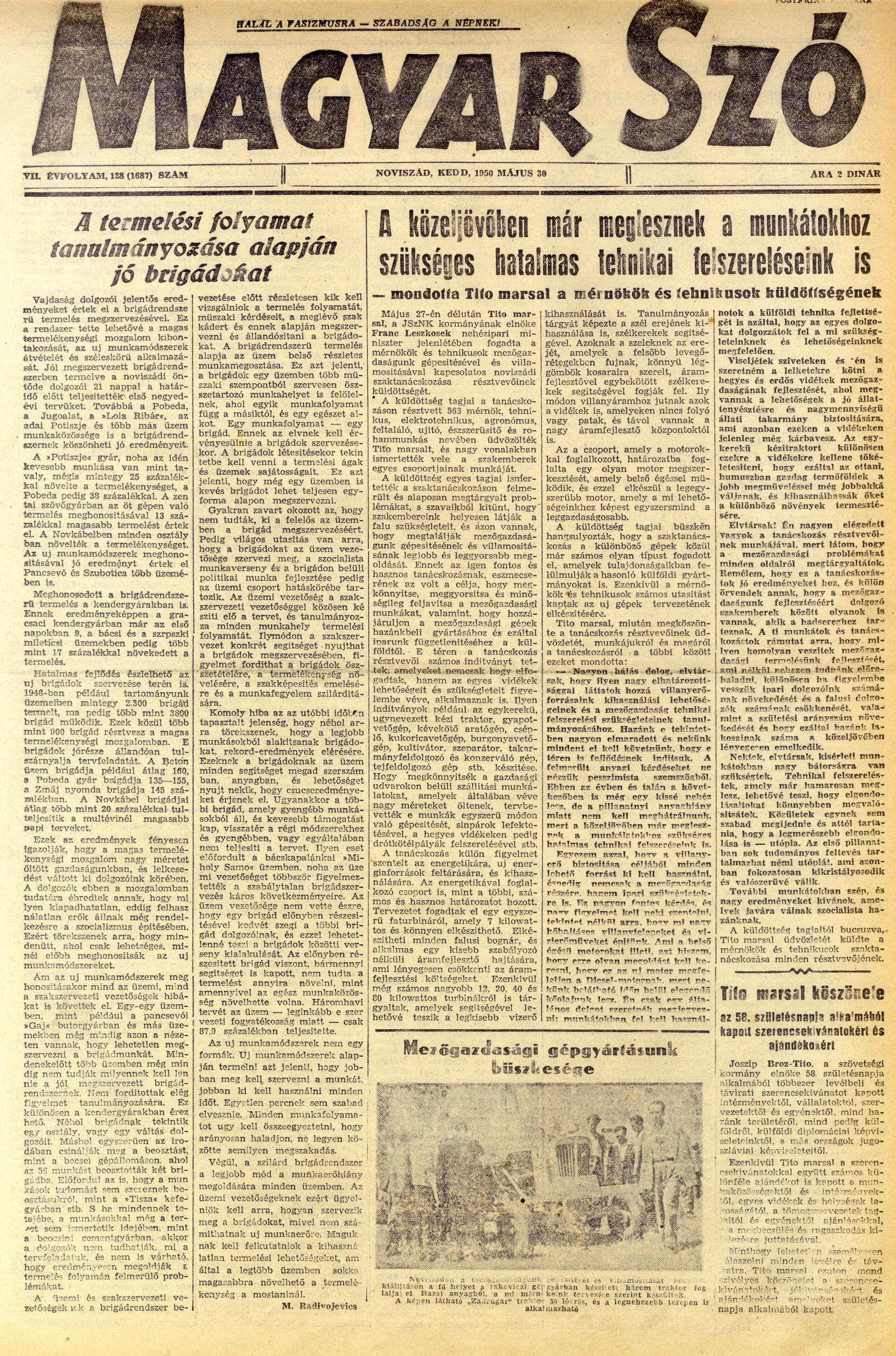 Magyar Szó, 7. évf. 1950. május 30. 128. sz. 1–4. oldal