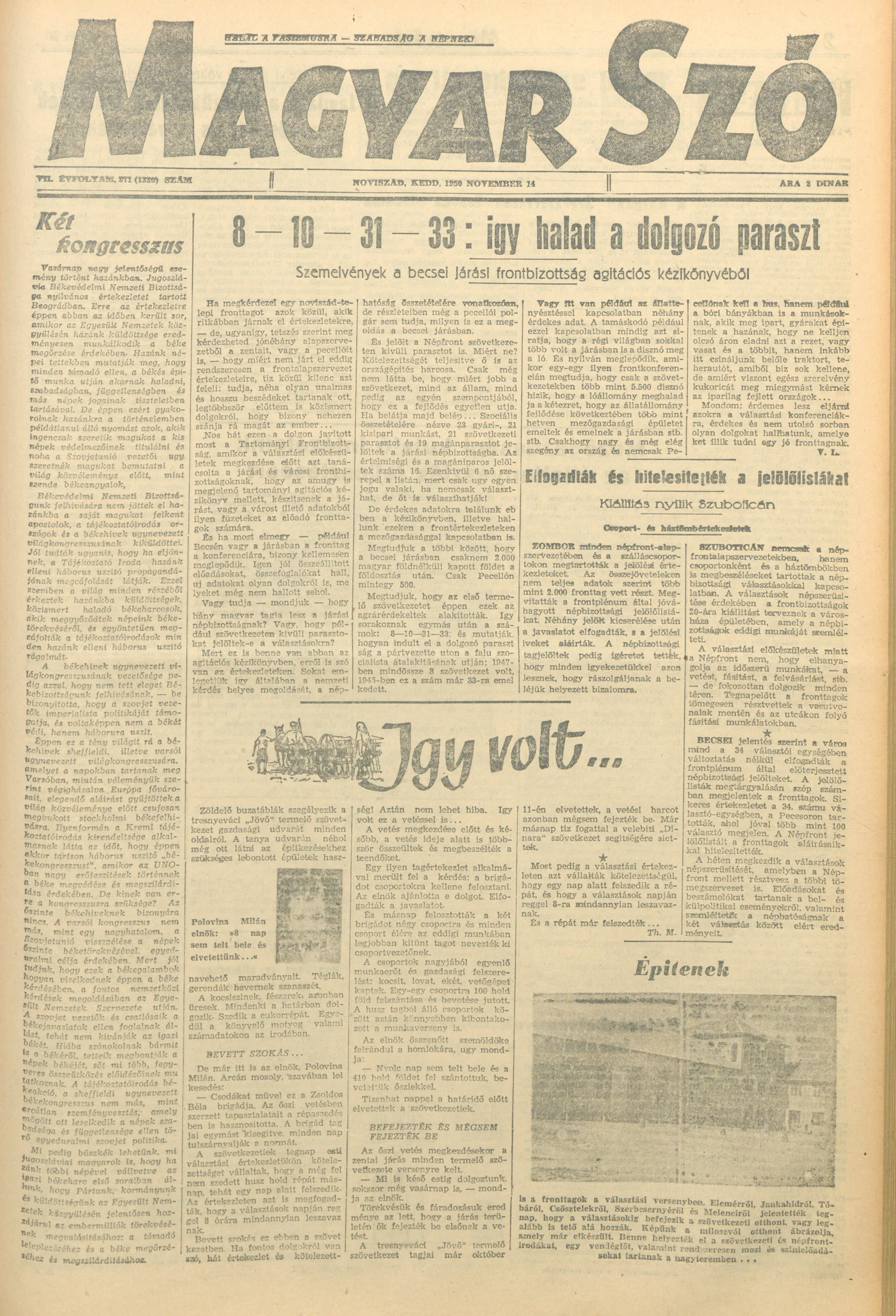 Magyar Szó, 7. évf. 1950. november 14. 271. sz. 1–4. oldal