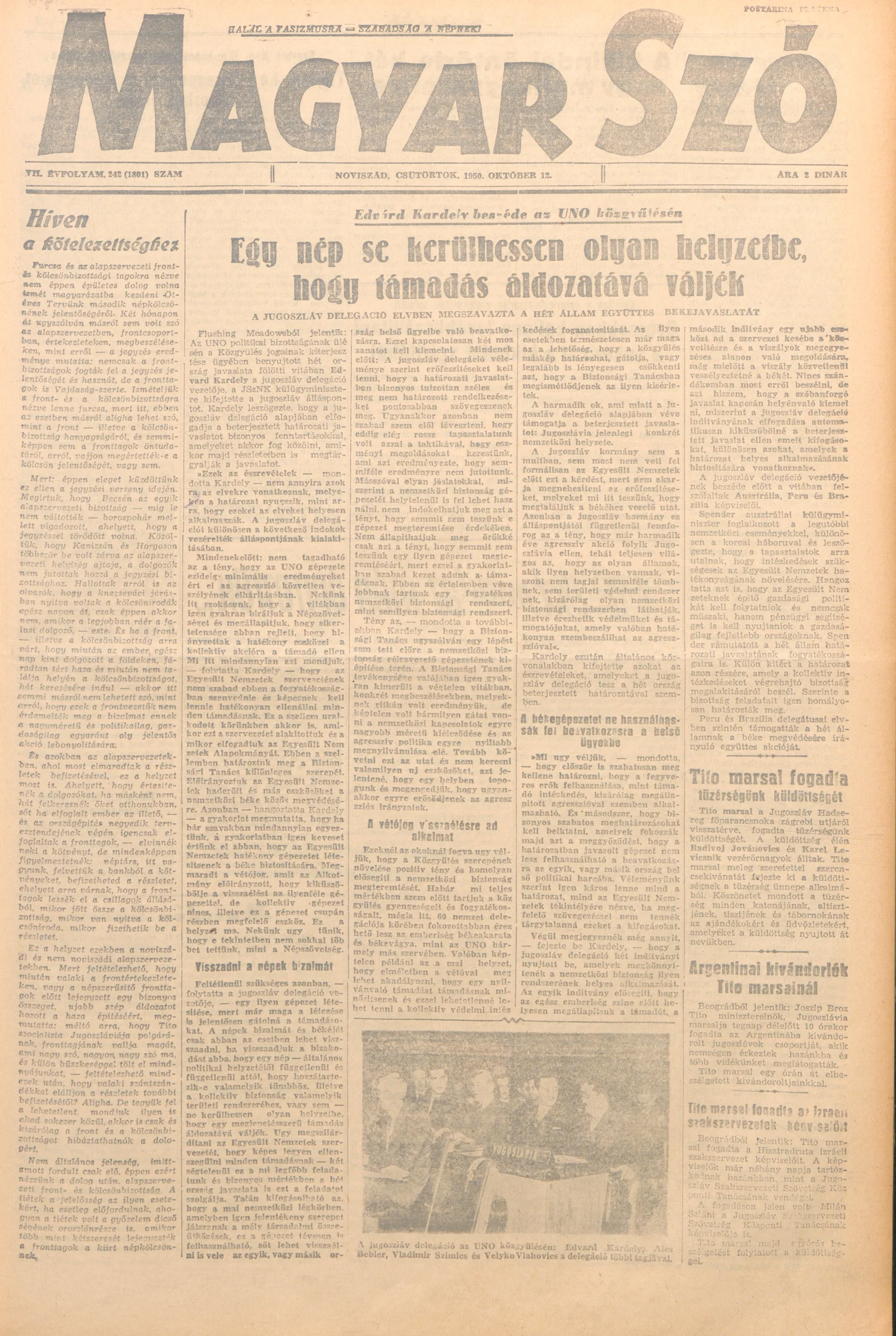 Magyar Szó, 7. évf. 1950. október 12. 242. sz.