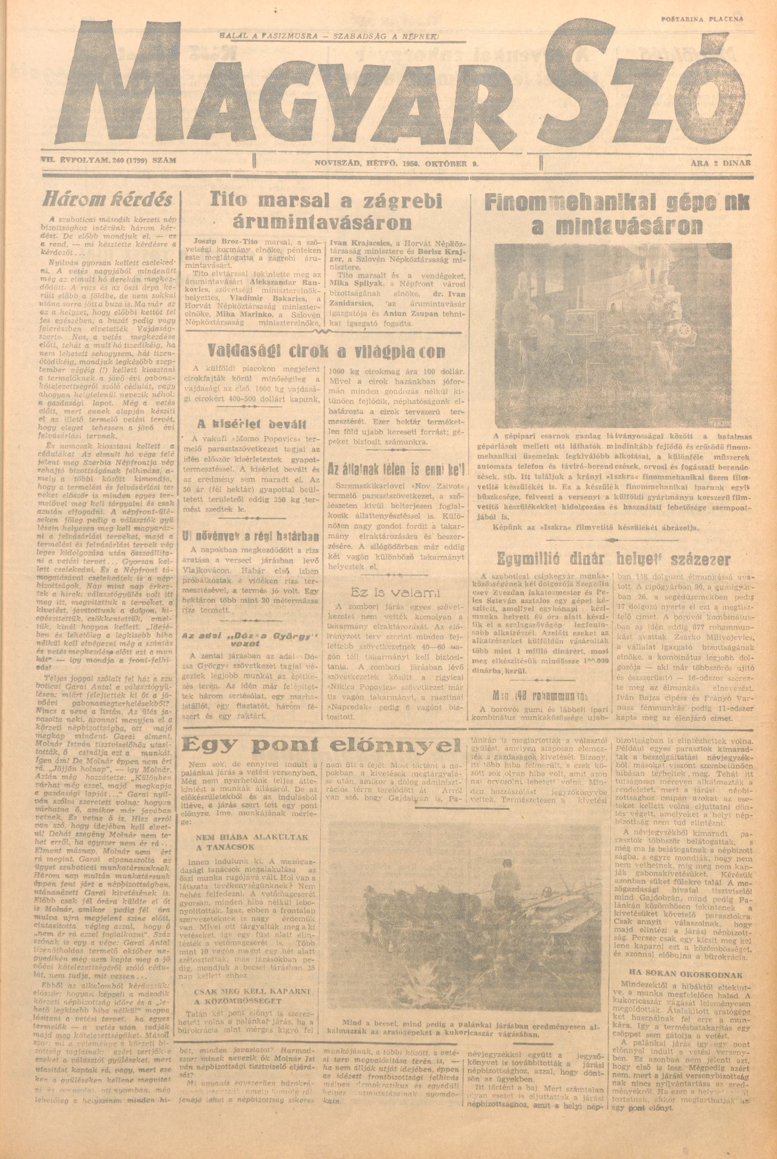 Magyar Szó, 7. évf. 1950. október 9. 240. sz. 1–4. oldal