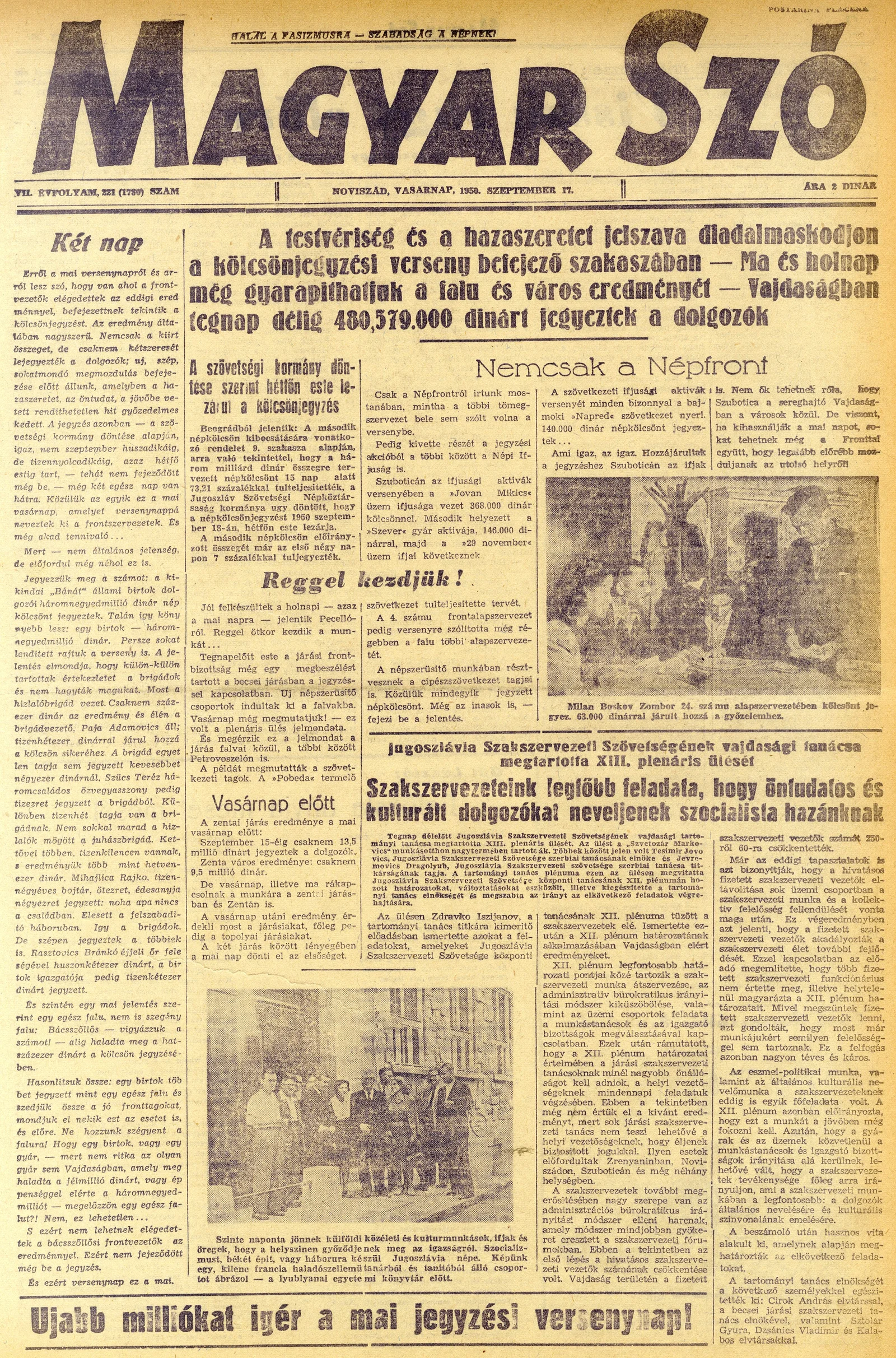 Magyar Szó, 7. évf. 1950. szeptember 17. 221. sz. 1–4. oldal