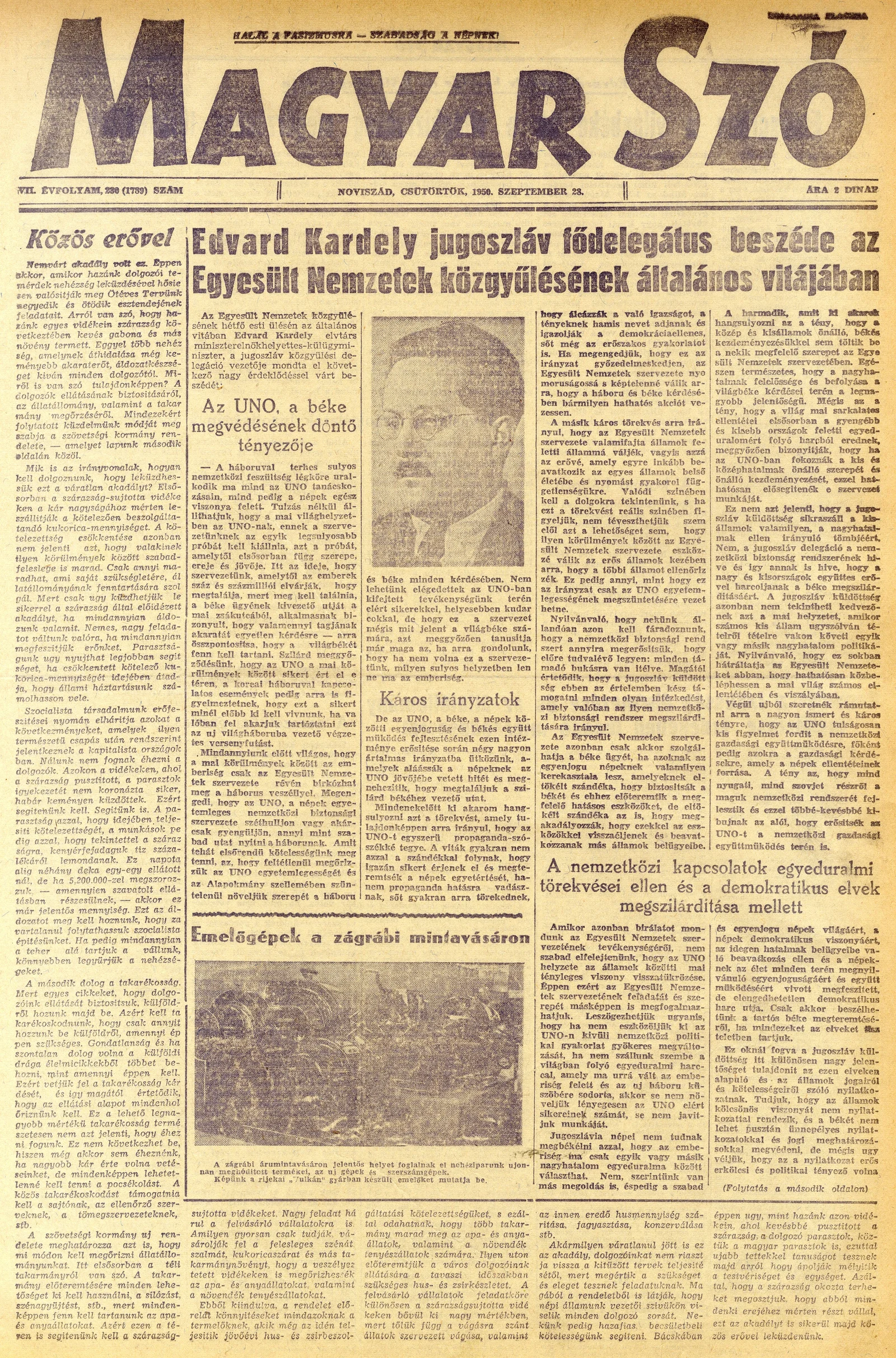 Magyar Szó, 7. évf. 1950. szeptember 29. 231. sz. 1–4. oldal