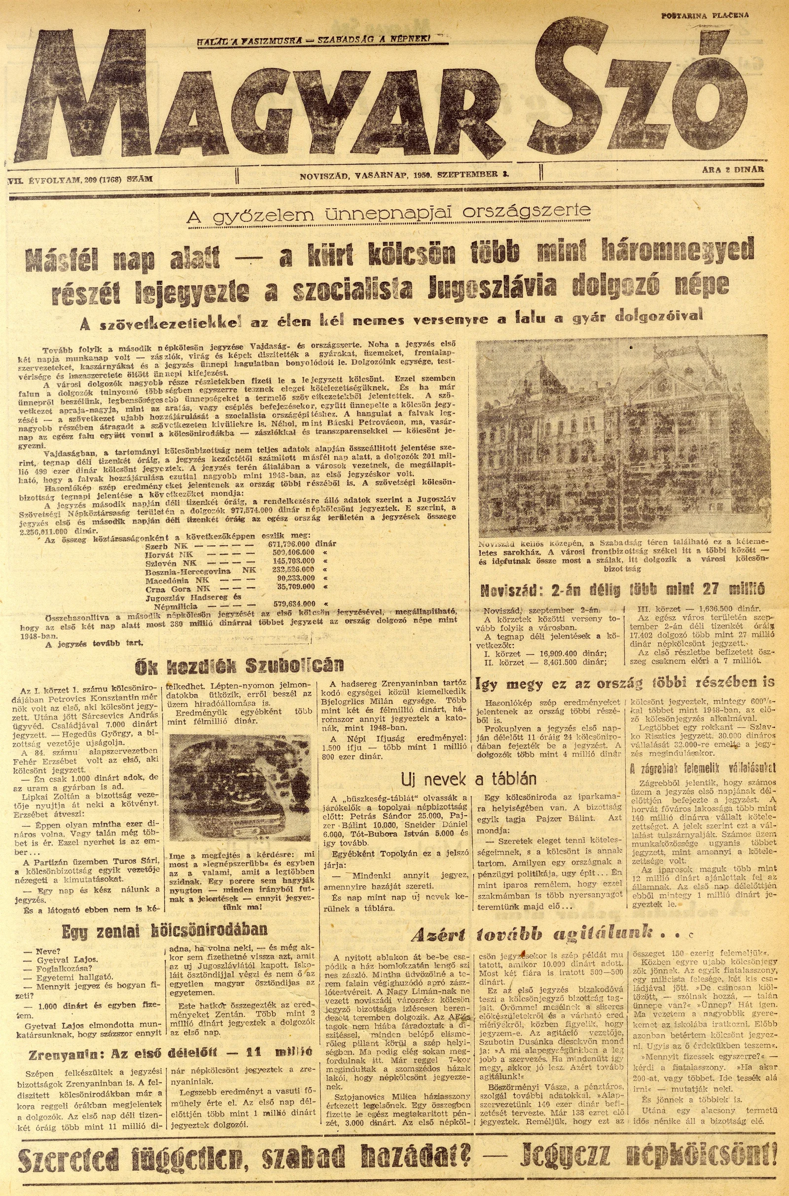 Magyar Szó, 7. évf. 1950. szeptember 3. 209. sz. 1–4. oldal