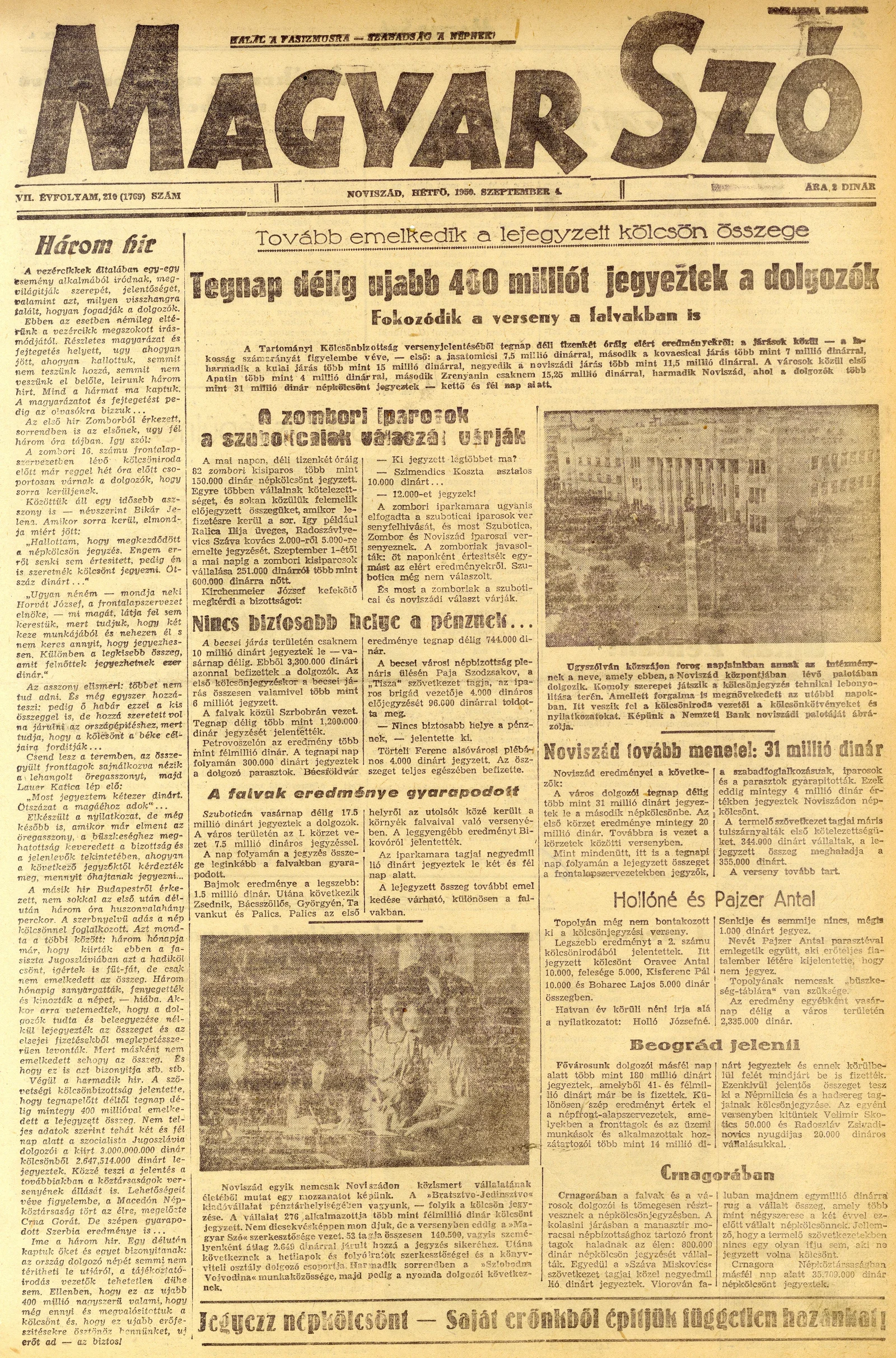 Magyar Szó, 7. évf. 1950. szeptember 4. 210. sz. 1–4. oldal