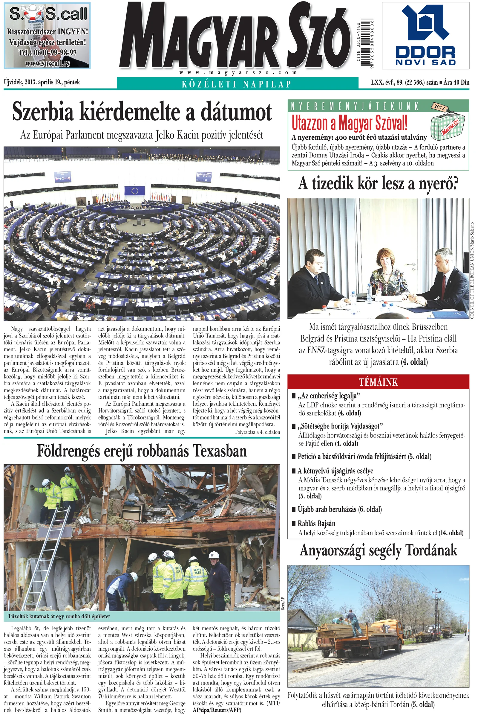 Magyar Szó, 70. évf. 2013. április 19. 89. sz. 1–20. oldal
