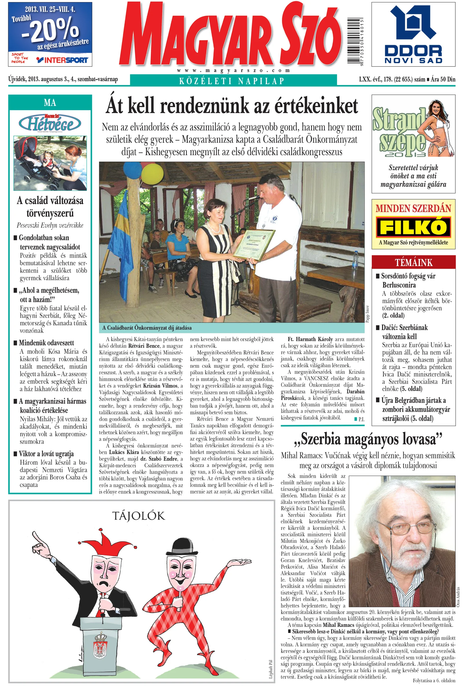 Magyar Szó, 70. évf. 2013. augusztus 3. – 4. 178. sz. 1–40. oldal