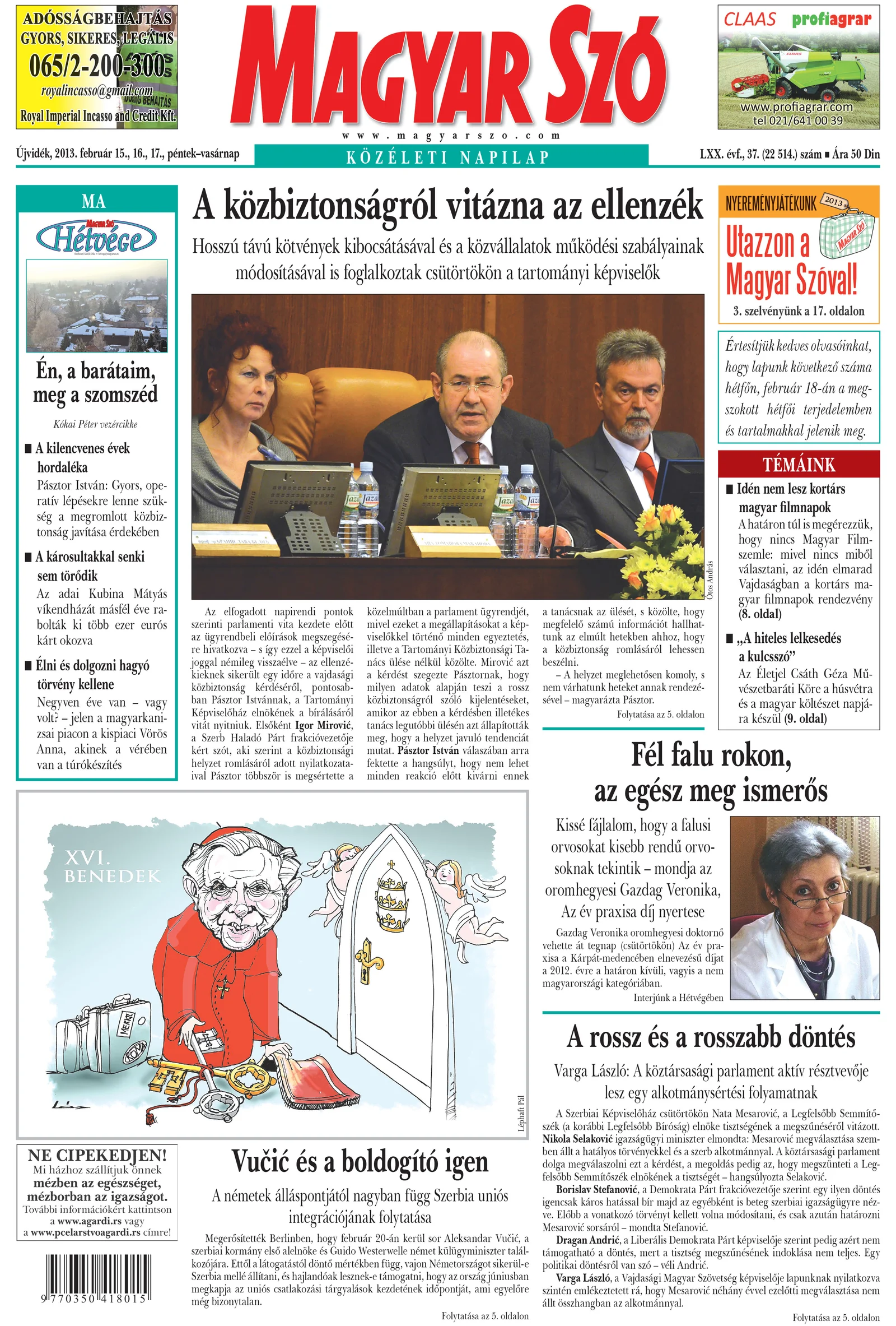Magyar Szó, 70. évf. 2013. február 15. – 17. 37. sz. 1–48. oldal