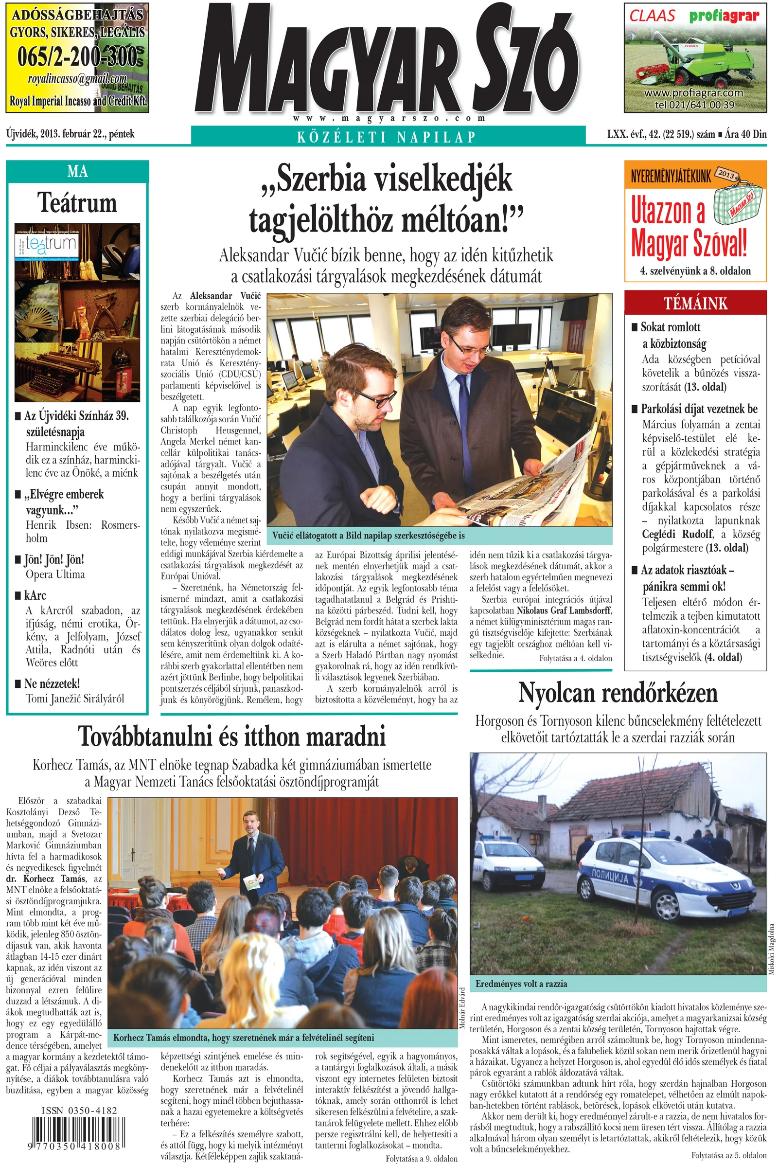 Magyar Szó, 70. évf. 2013. február 22. 42. sz. 1–20. oldal
