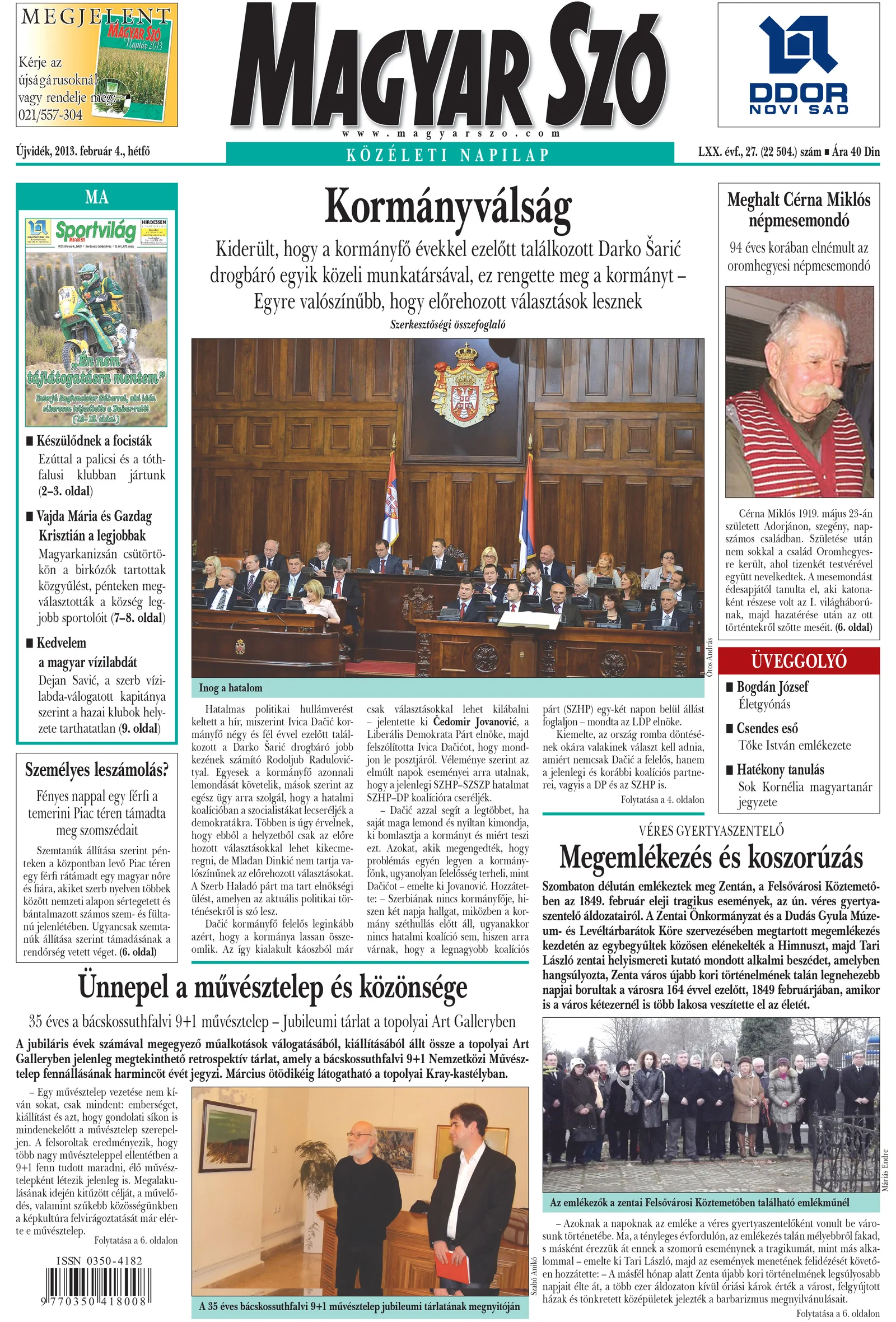 Magyar Szó, 70. évf. 2013. február 4. 27. sz. 1–16. oldal
