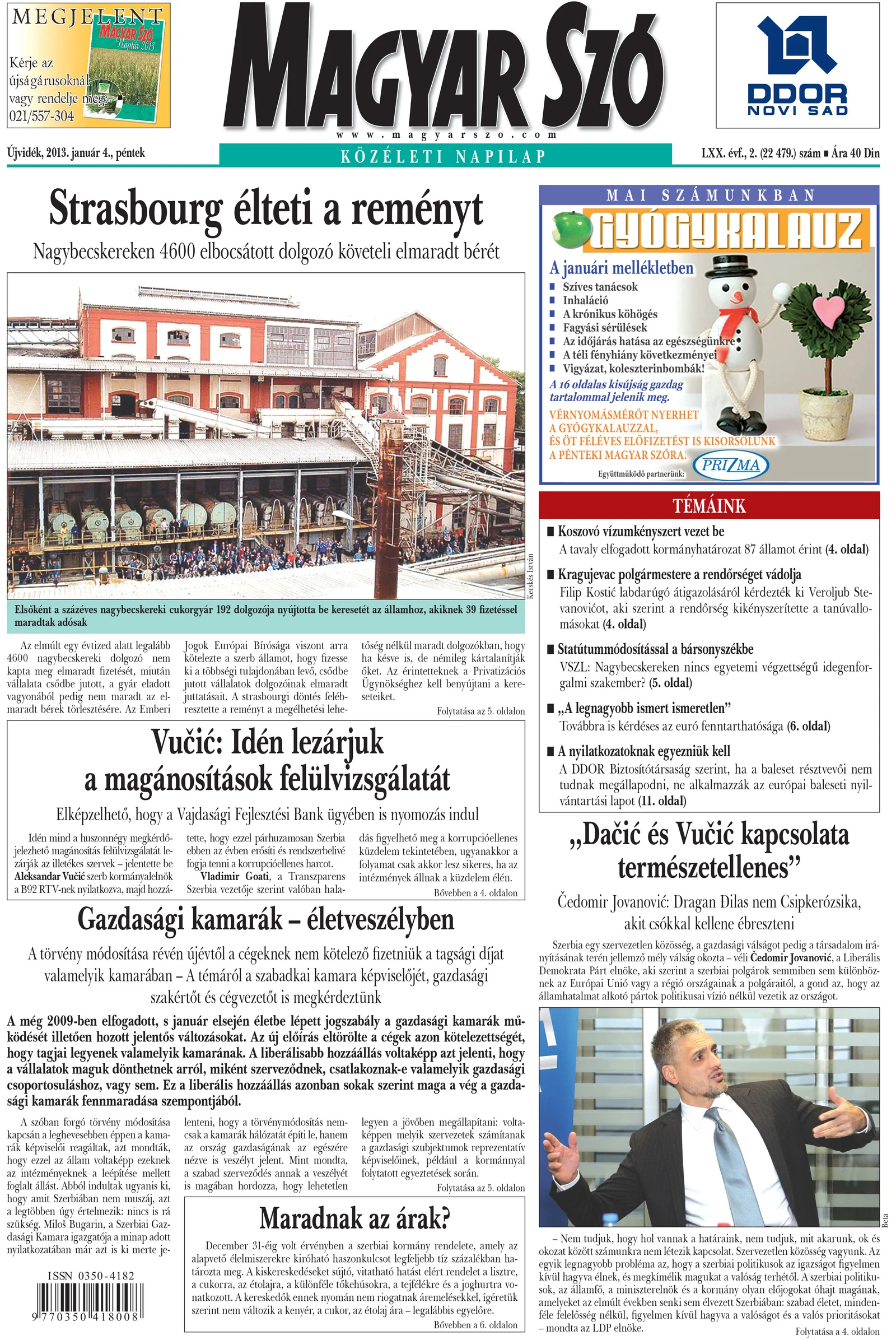 Magyar Szó, 70. évf. 2013. január 4. 2. sz. 1–20. oldal