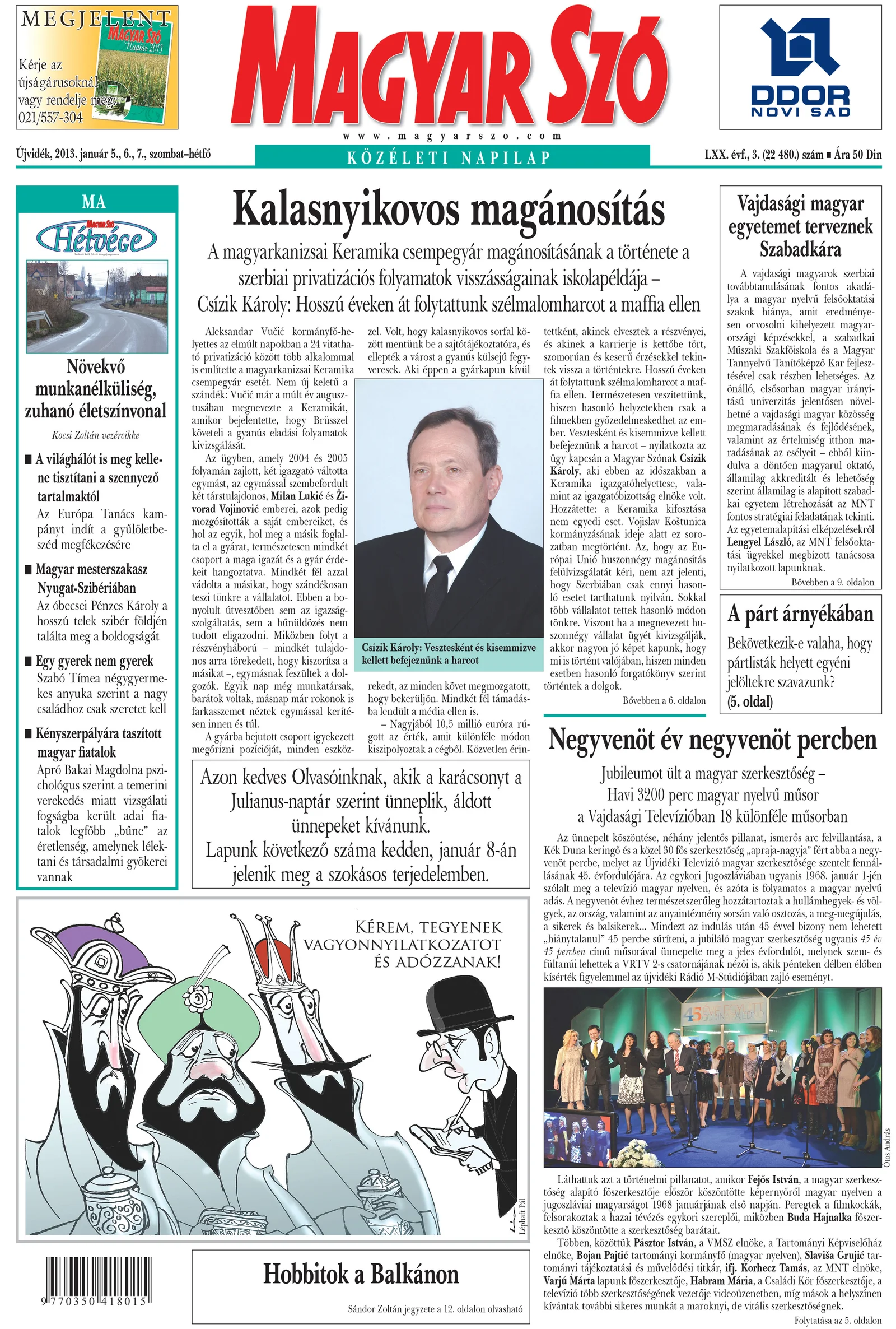 Magyar Szó, 70. évf. 2013. január 5. – 7. 3. sz. 1–40. oldal