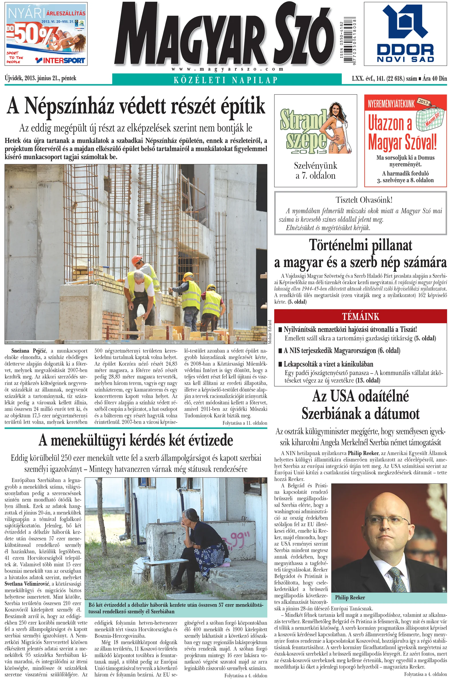 Magyar Szó, 70. évf. 2013. június 21. 141. sz. 1–20. oldal