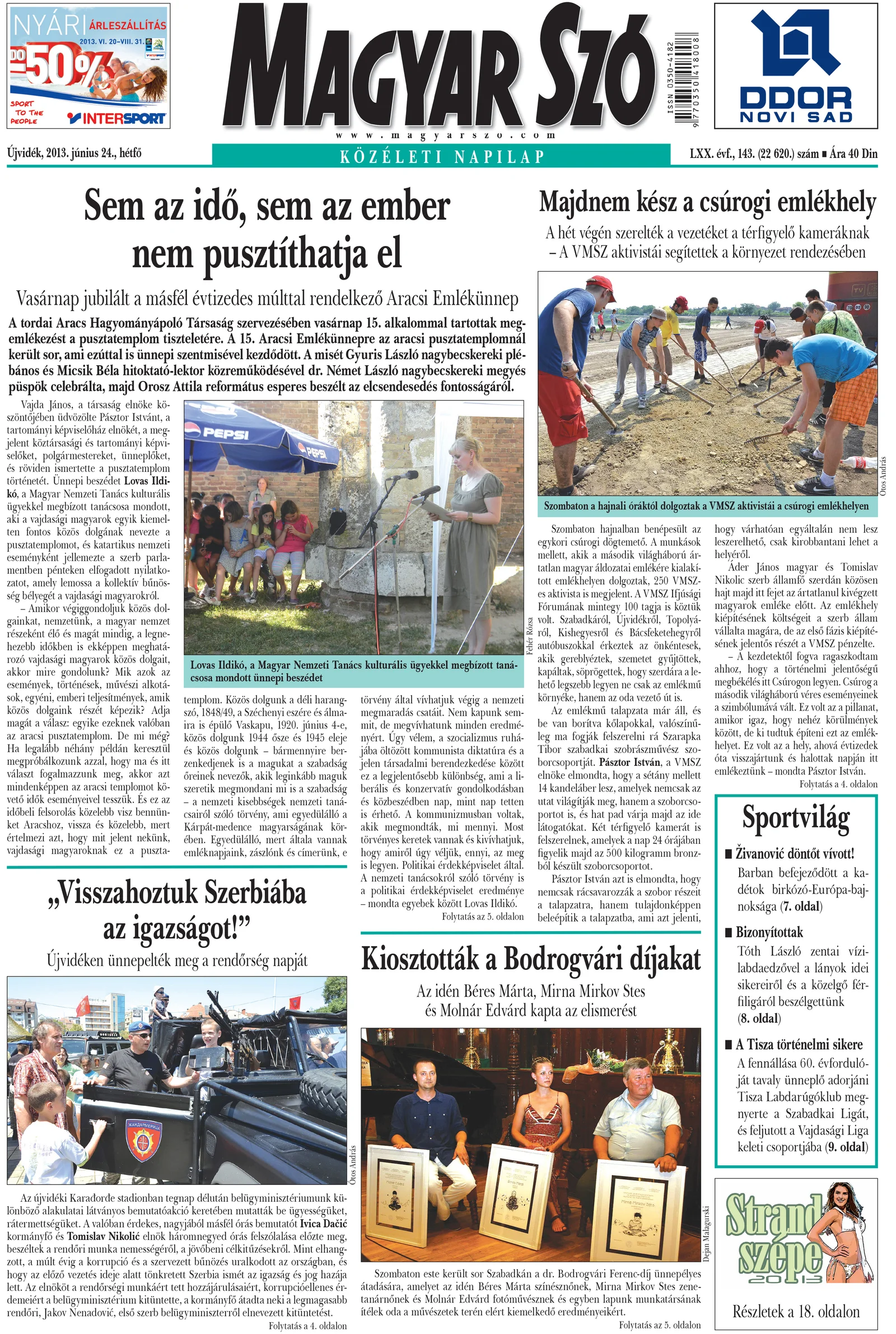 Magyar Szó, 70. évf. 2013. június 24. 143. sz. 1–16. oldal
